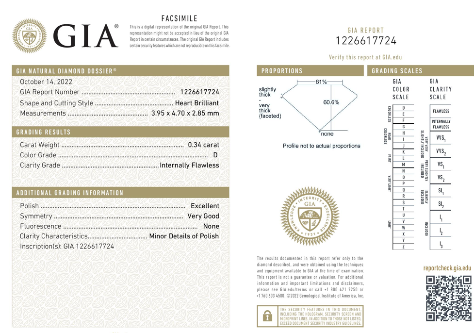 A loose heart shaped Diamond of 0.34ct (with GIA summary report of D IF #1226617724). (New)
