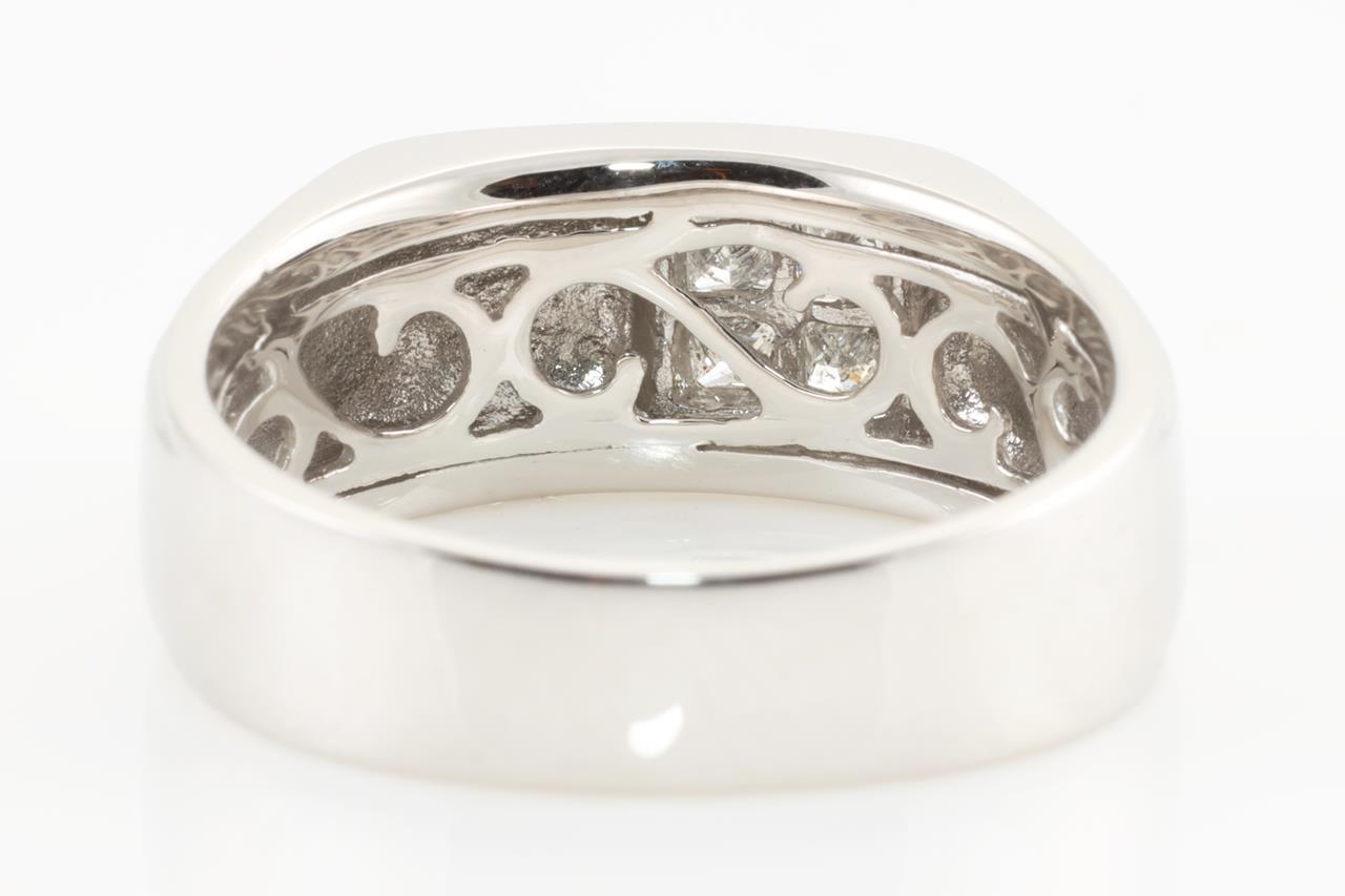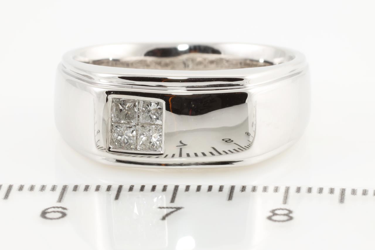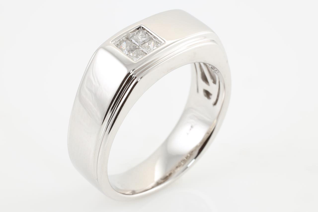 Diamond Mens ring with princess cut Diamonds totalling 0.35cts (Estimated grading: H P1-2). 9ct white gold. Ring size V - Note resizing is not recommended. Weight: 9.9g (New)