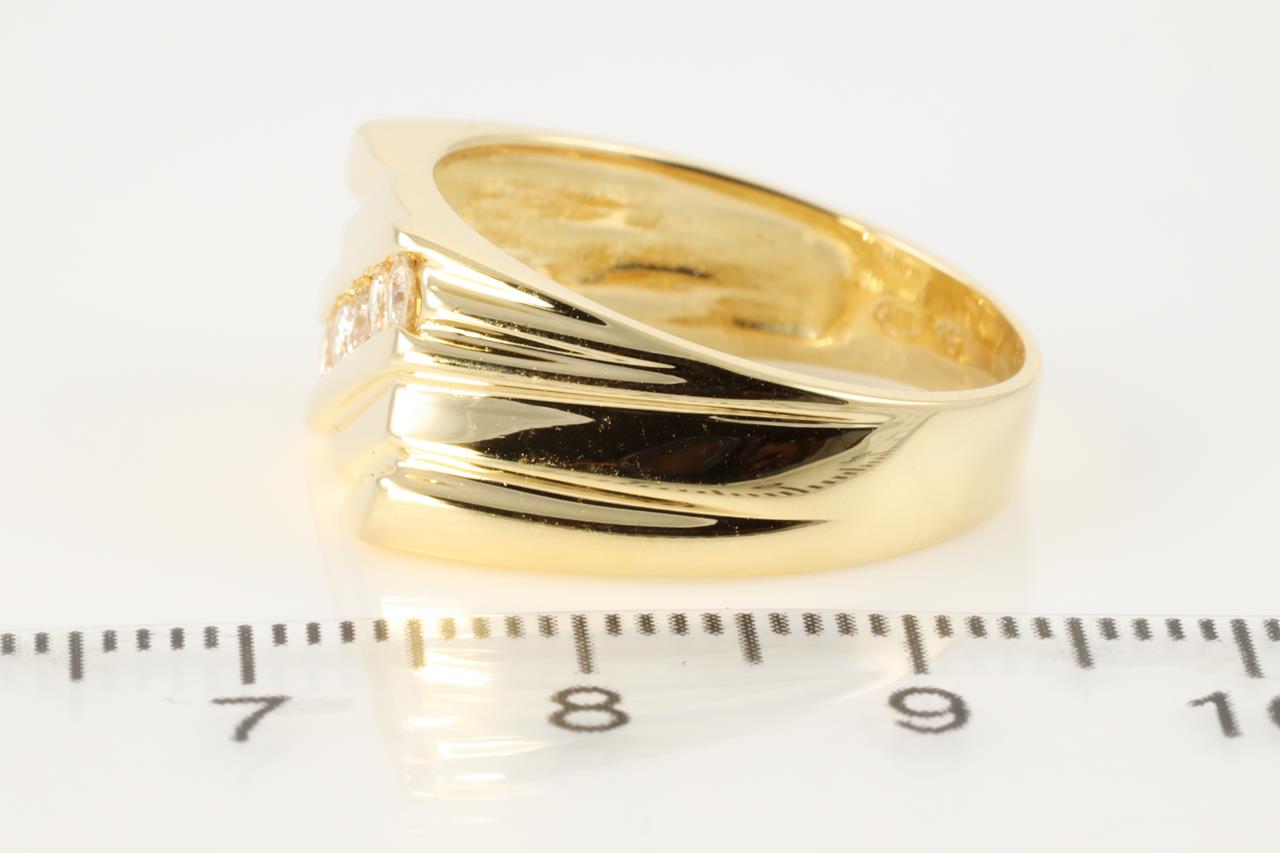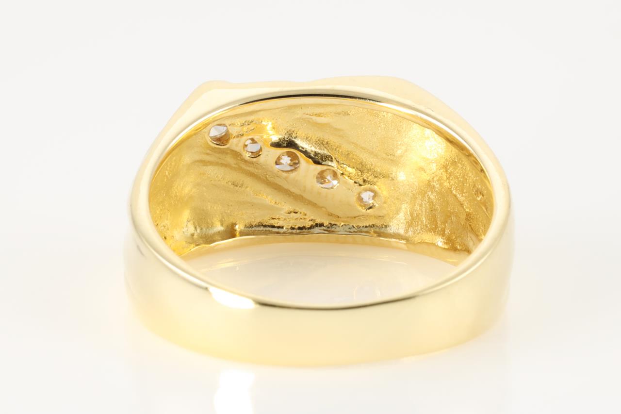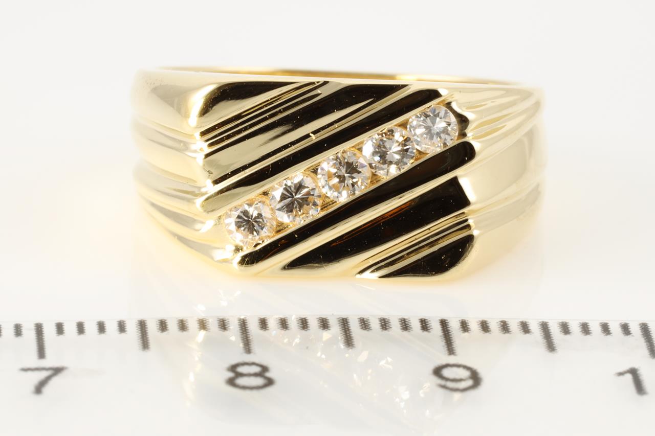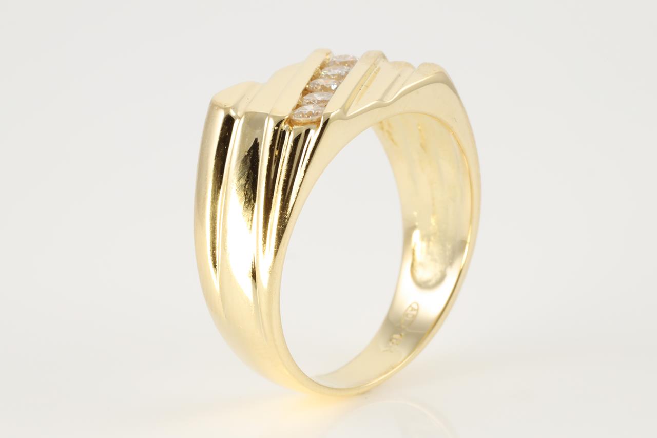 Diamond mens ring with round Diamonds totalling 0.35cts (Estimated grading: H-I VS-SI). 18ct yellow gold. Ring size R. Weight: 8.5g (Pre-owned)