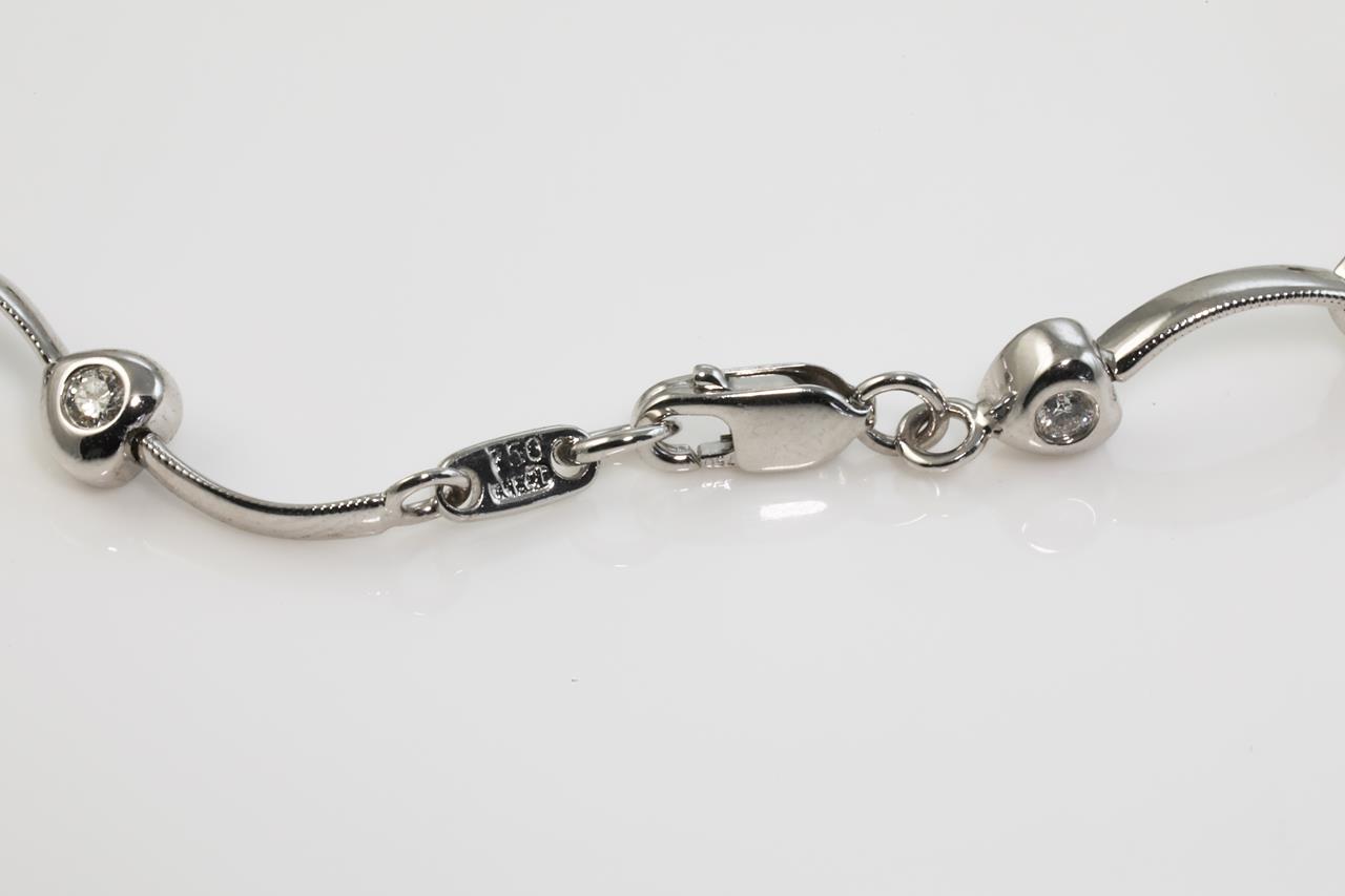 Diamond Bracelet with 12 round Diamonds totalling 0.36cts (Estimated grading: G SI). 18ct white gold. Length: 16.5cm. Weight: 6.9g (Pre-owned)