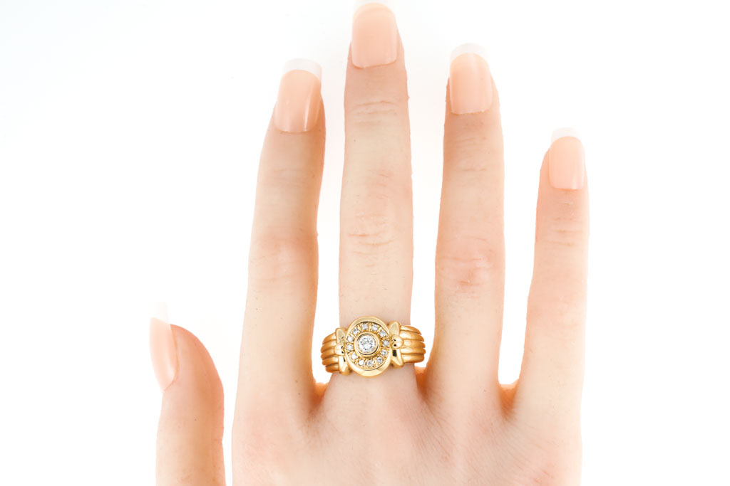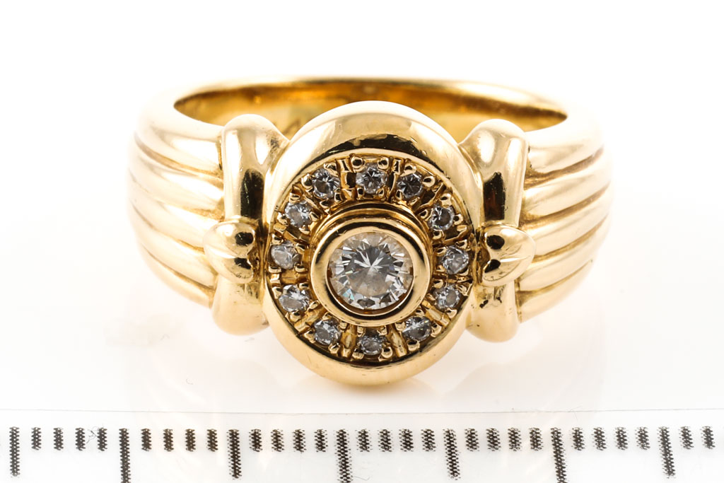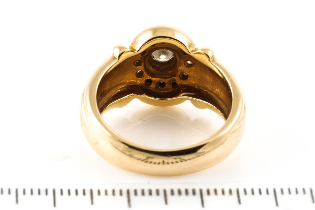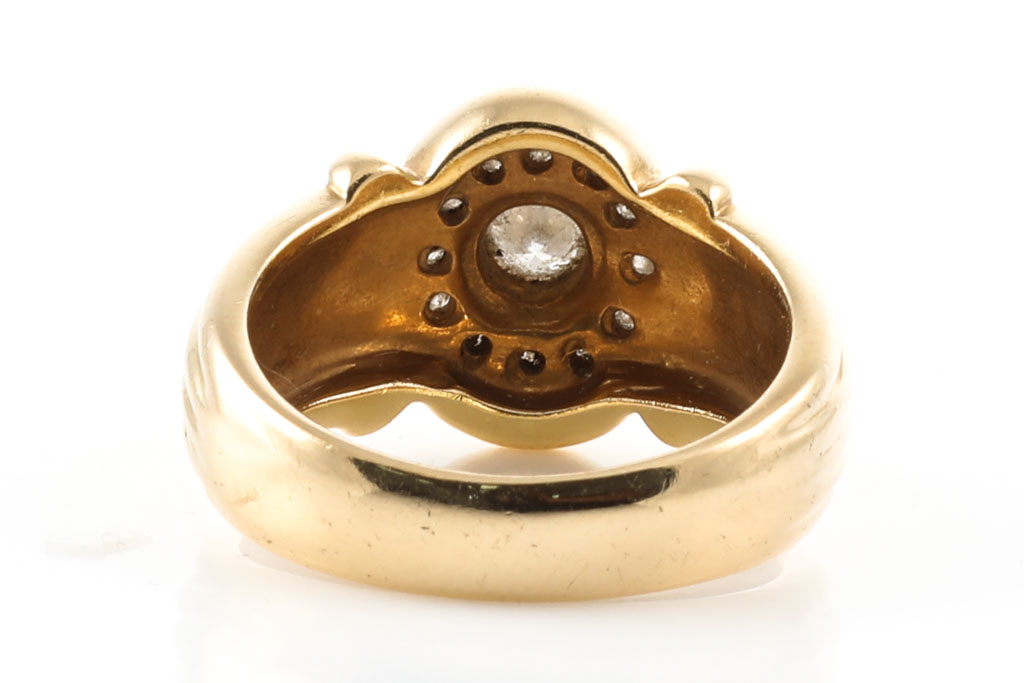 Diamond Dress ring with Diamonds totalling 0.36cts (Estimated grading: I SI) 18ct yellow gold. Ring size P 1/2 Weight: 12.4g. (Pre-owned)