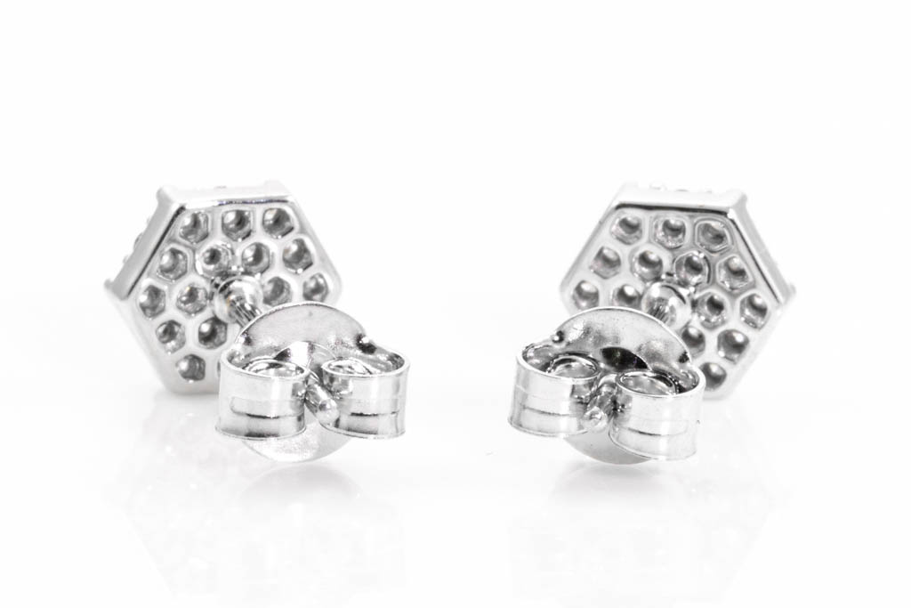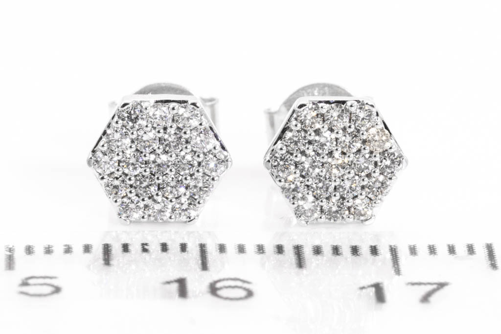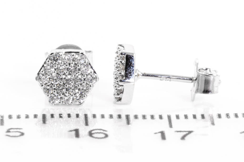 Diamond earrings with 38 round diamonds totalling 0.36cts. (Estimated grading: H SI). 14ct white gold. Weight: 1.8g. (New)