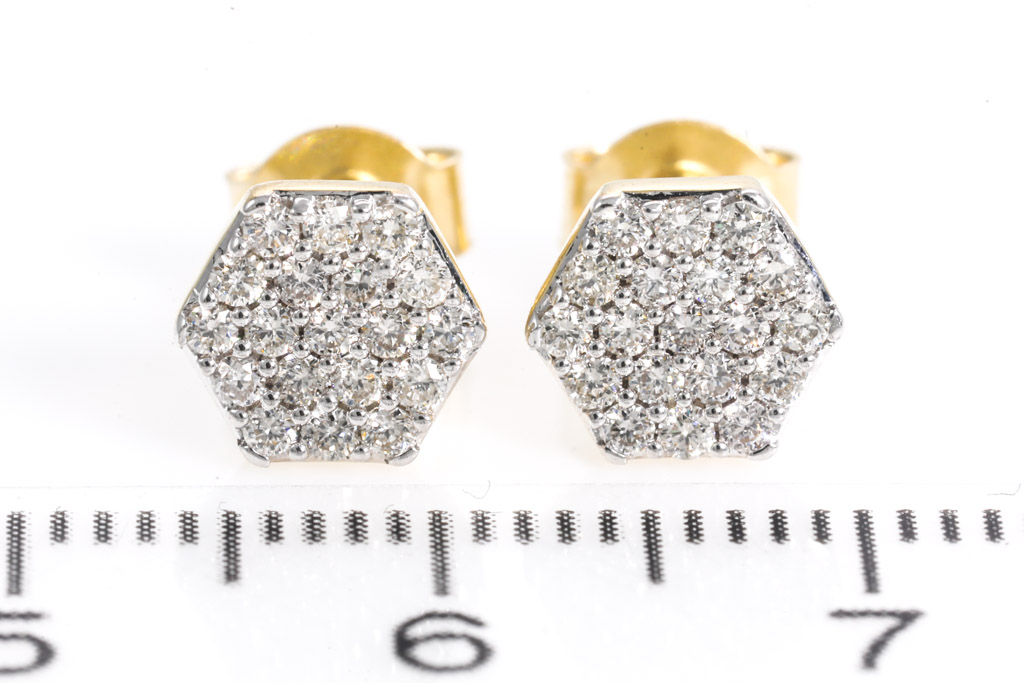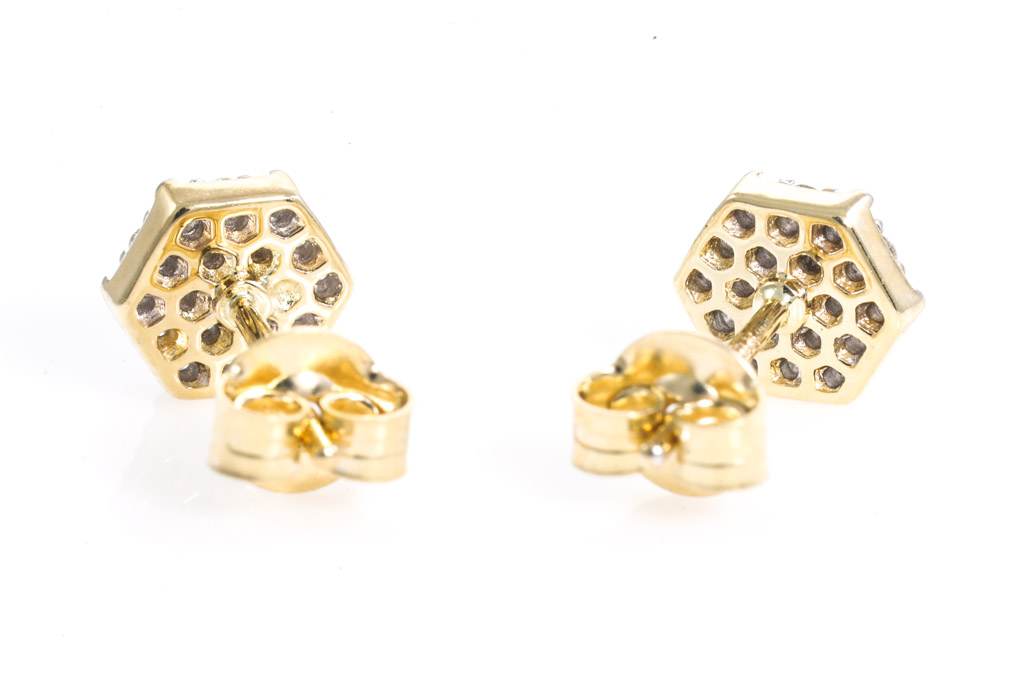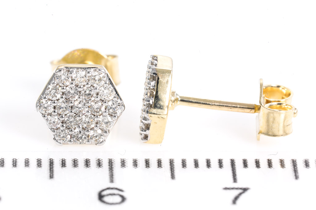 Diamond earrings with 38 round diamonds totalling 0.36cts. (Estimated grading: H SI). 14ct yellow gold. Weight: 1.8g. (New)