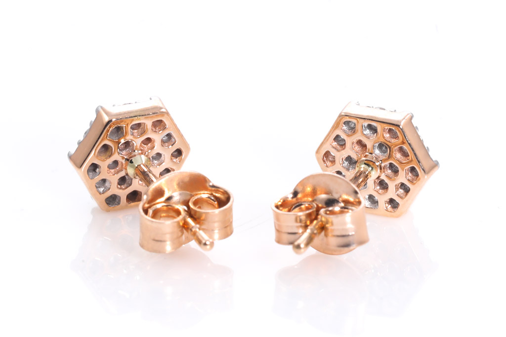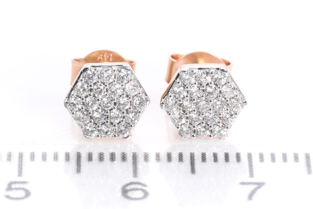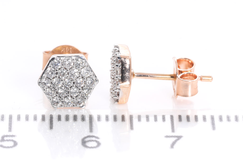 Diamond earrings with 38 round diamonds totalling 0.36cts. (Estimated grading: H SI). 14ct rose gold. Weight: 1.8g. (New)
