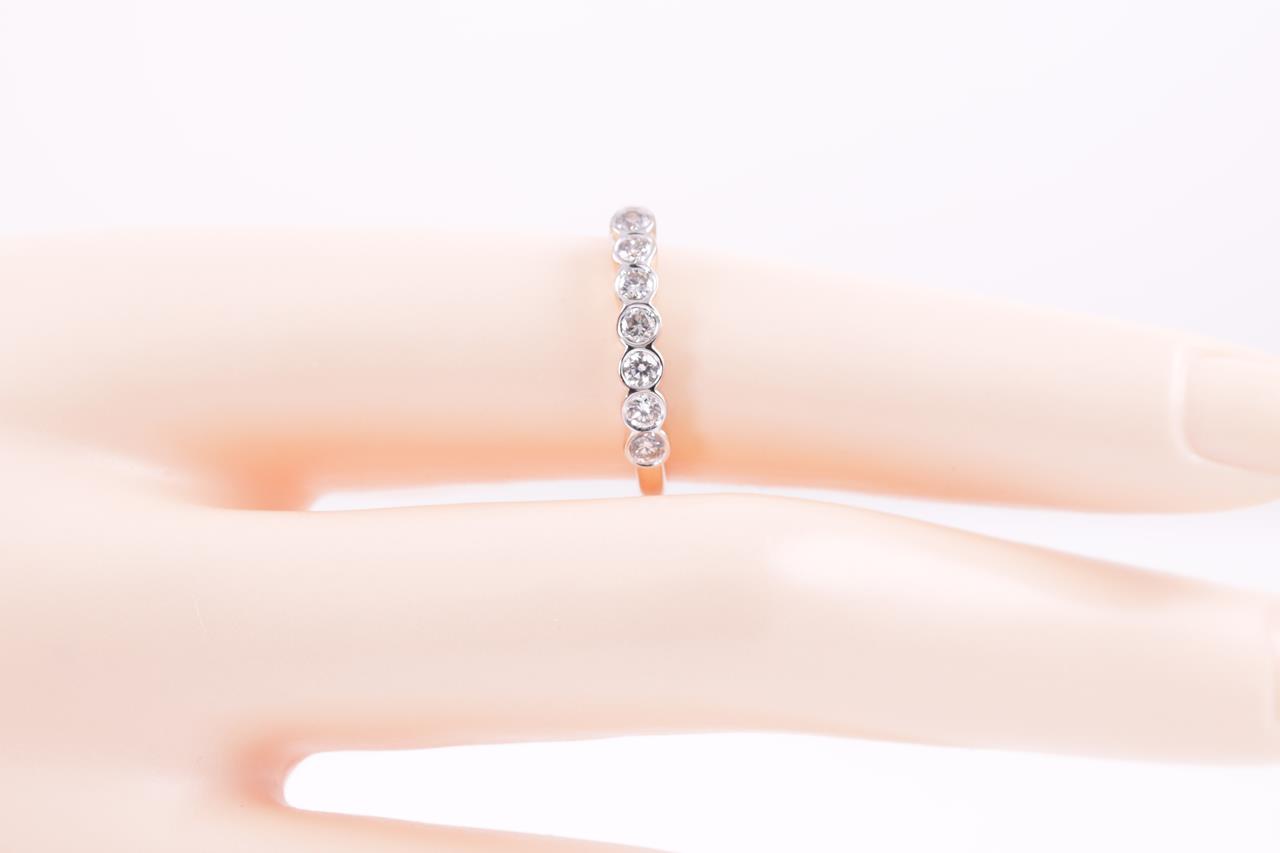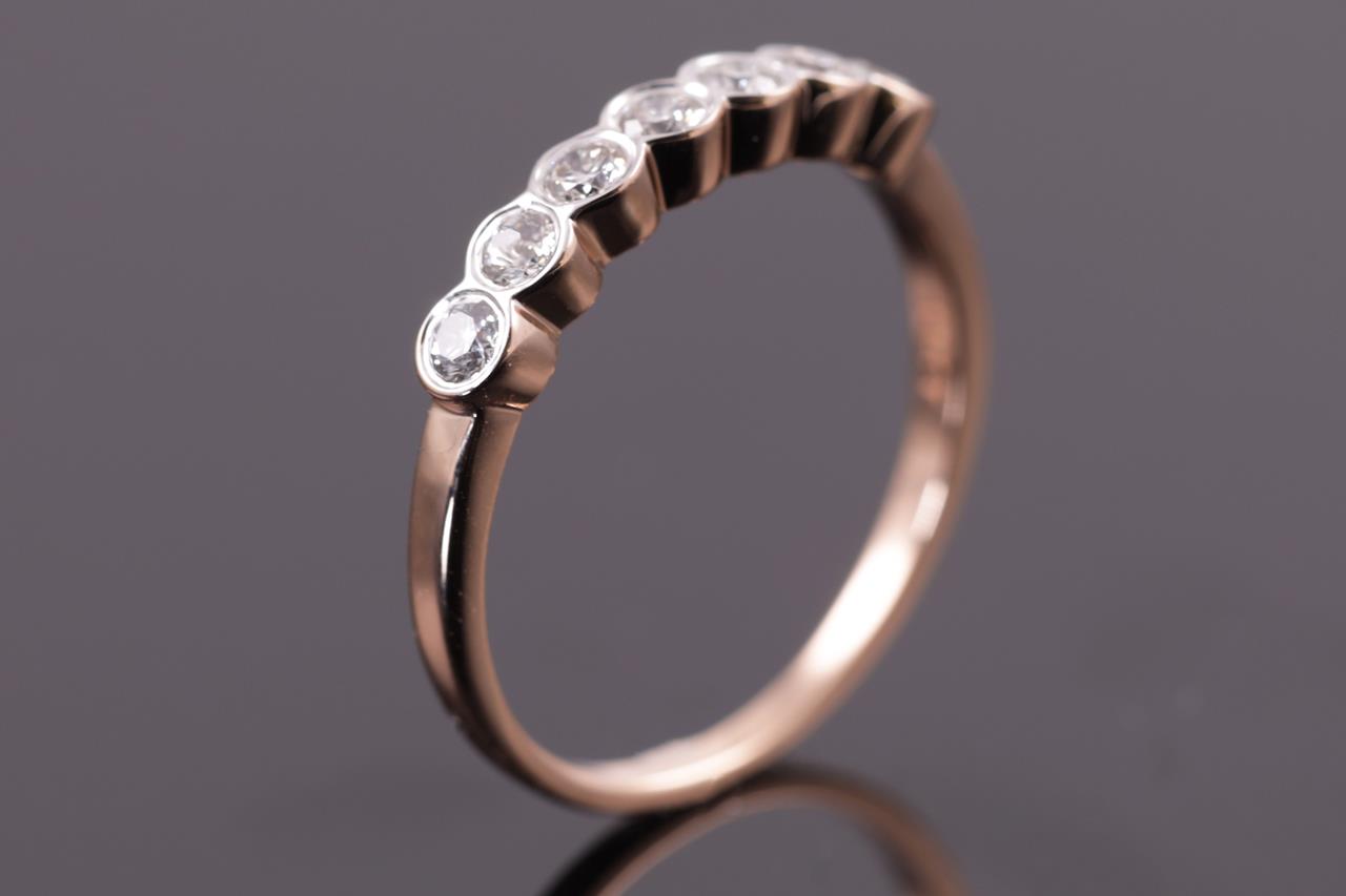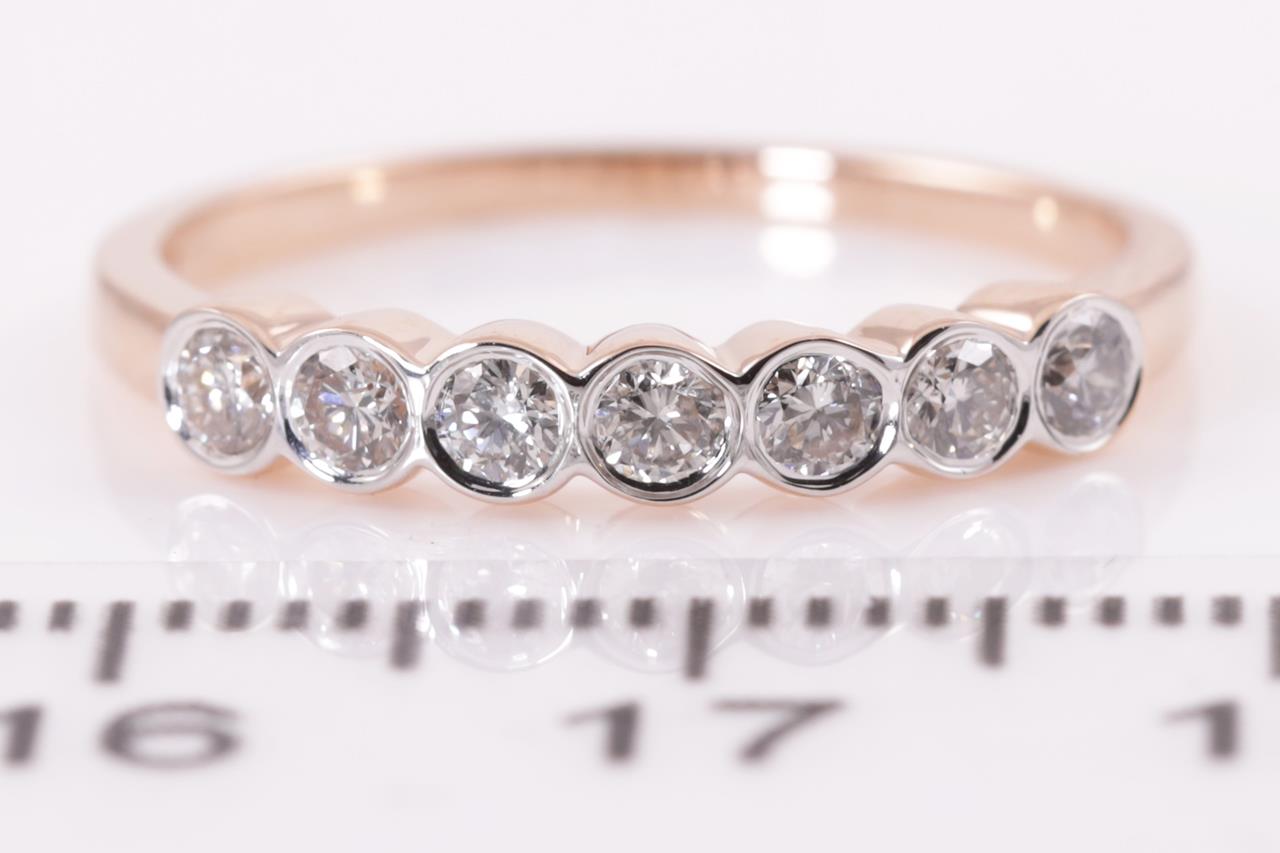 Diamond eternity ring with 7 round Diamonds totalling 0.36cts (Estimated grading: H SI). 14ct rose gold. Size: M1/2. Weight: 1.8g. (New)