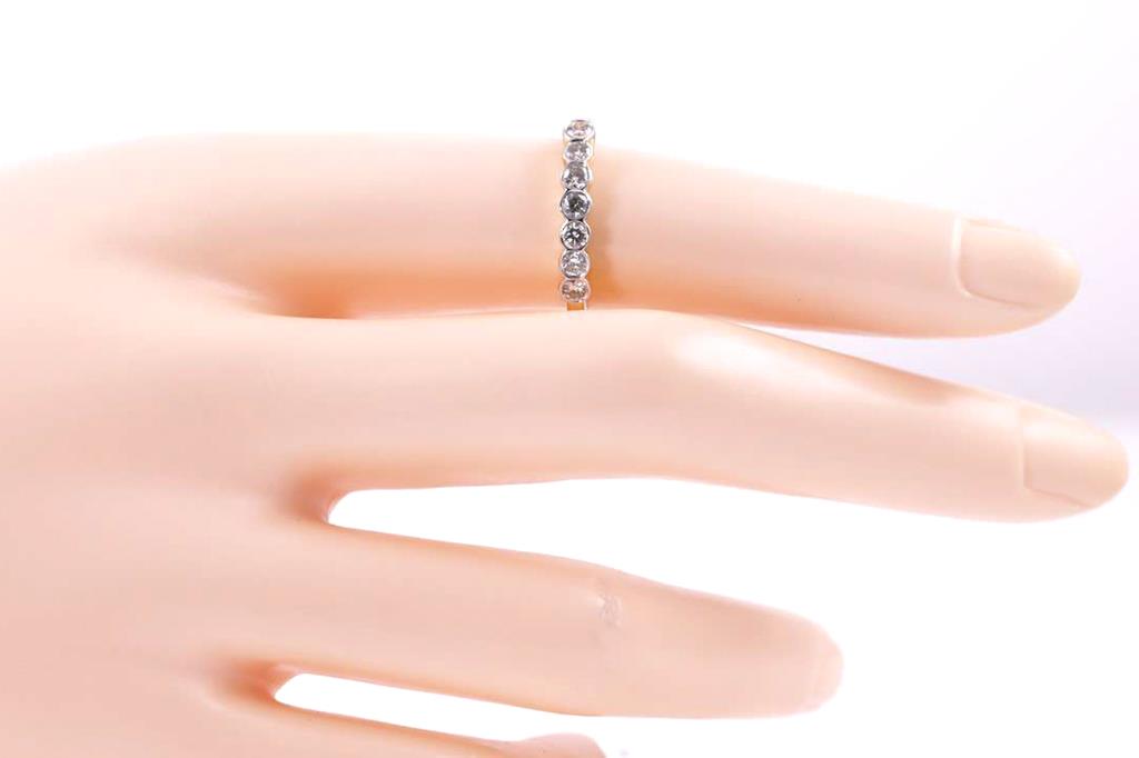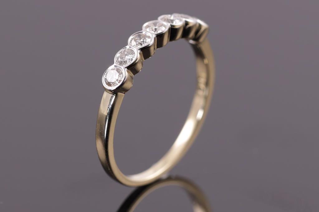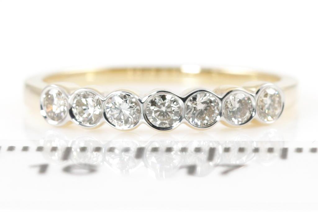 Diamond eternity ring with 7 round Diamonds totalling 0.36cts (Estimated grading: H SI). 14ct yellow gold. Size: M1/2. Weight: 1.8g. (New)