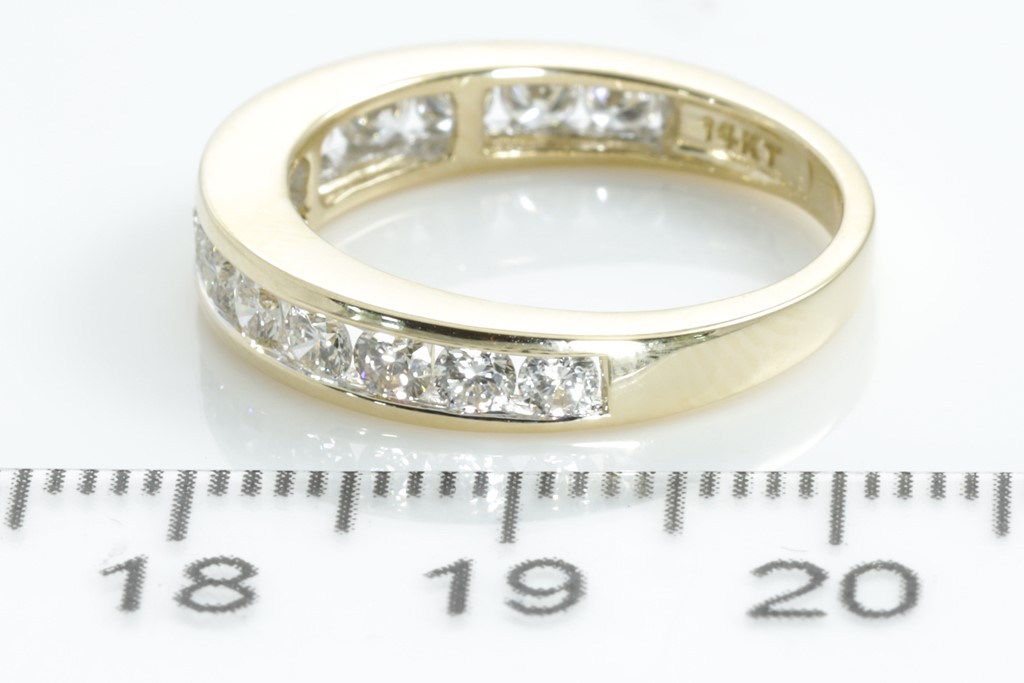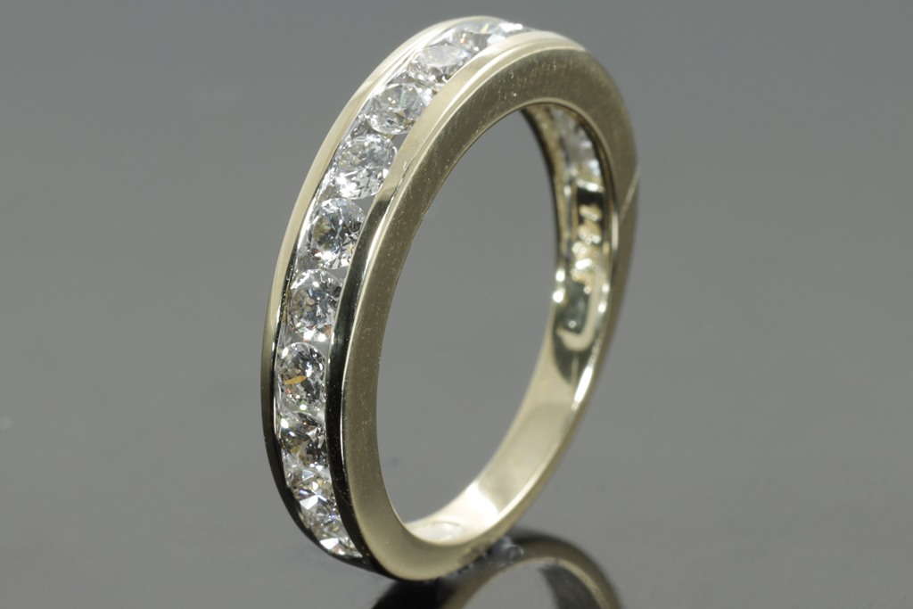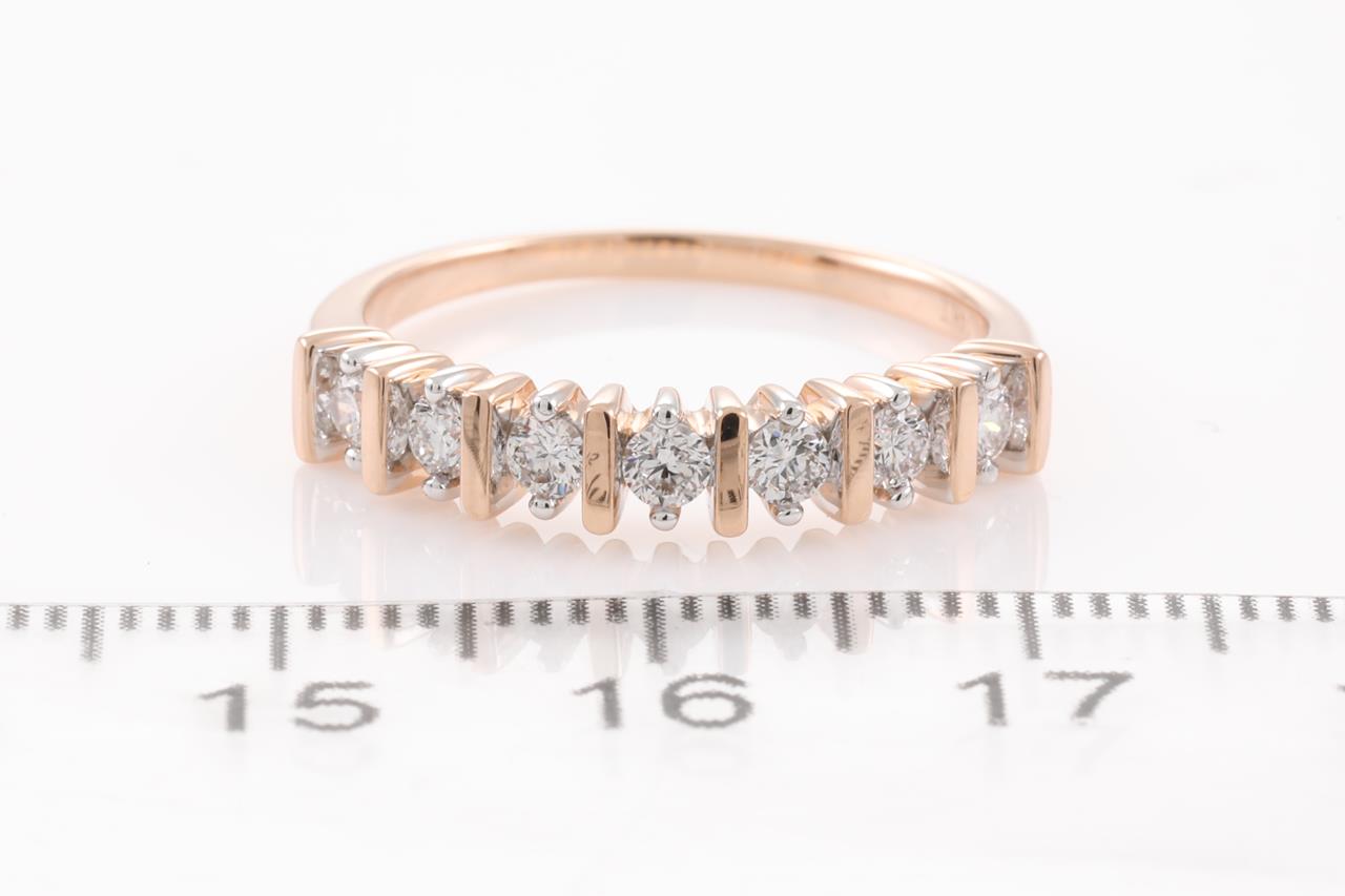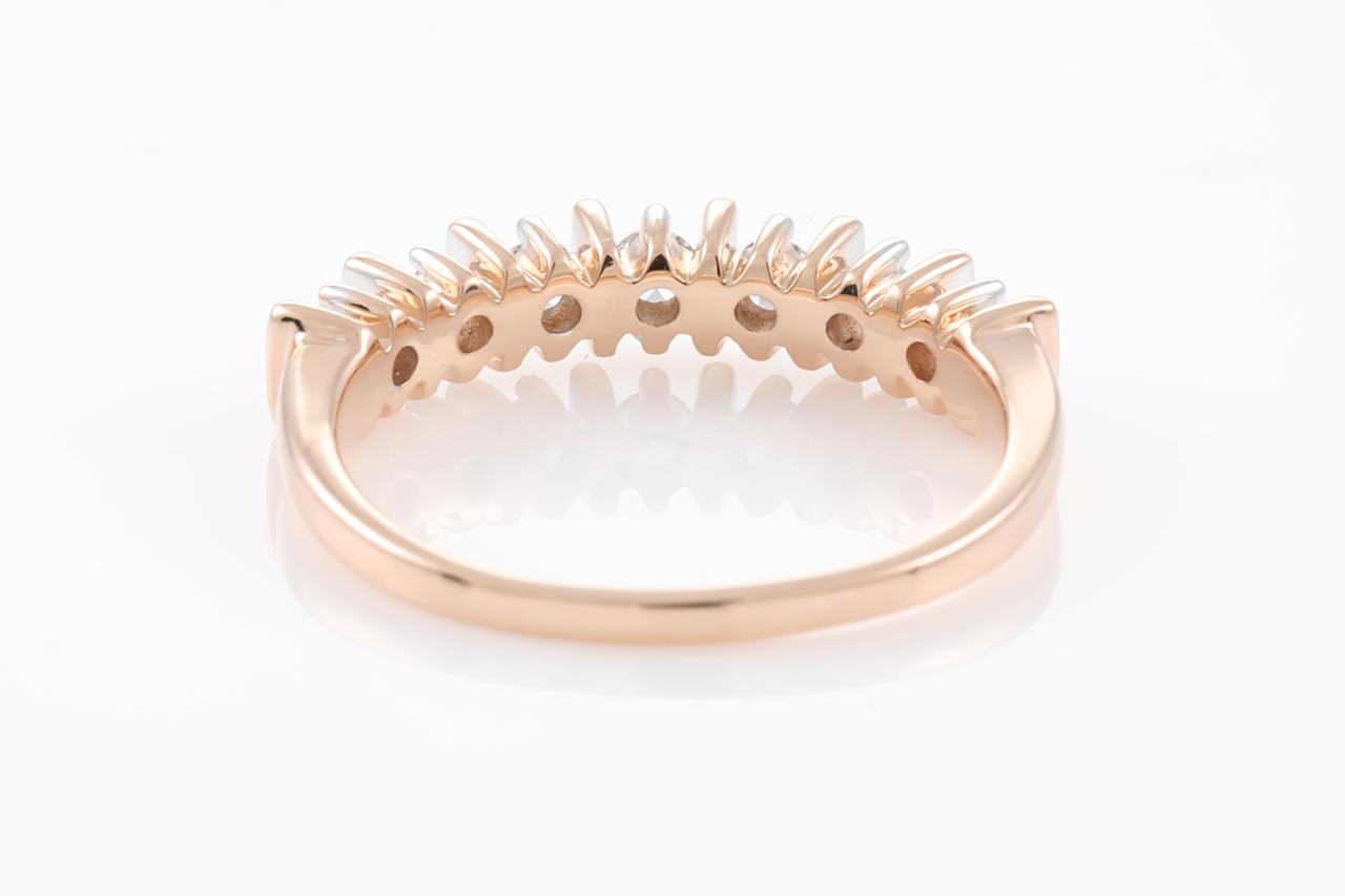 Diamond eternity ring with 7 round Diamonds totalling 0.36cts (Estimated grading: H SI). 14ct rose and white gold. Size: M1/2 - can be resized up by a maximum of 3 sizes, down with ring clip. Weight: 3.0g. (New)