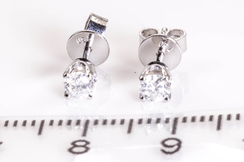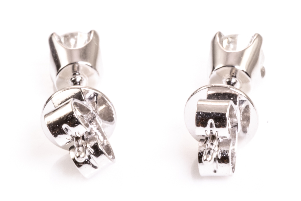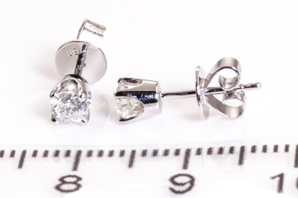 Diamond stud earrings with 2 round Diamonds totalling 0.36cts (Estimated grading: G-H SI-P1). 18ct white gold. Weight: 1.1g. (New)
