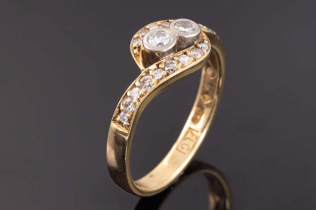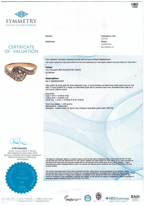 Diamond dress ring with round Diamonds totalling 0.37cts (H-TTLB SI). 18ct yellow & white gold. Ring size P 1/2. Weight: 4.9g. With Valuation Certificate Ref #990002057957. (Pre-owned)