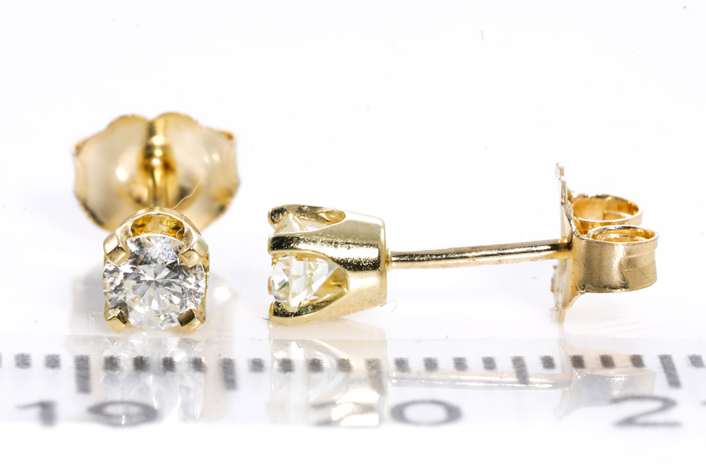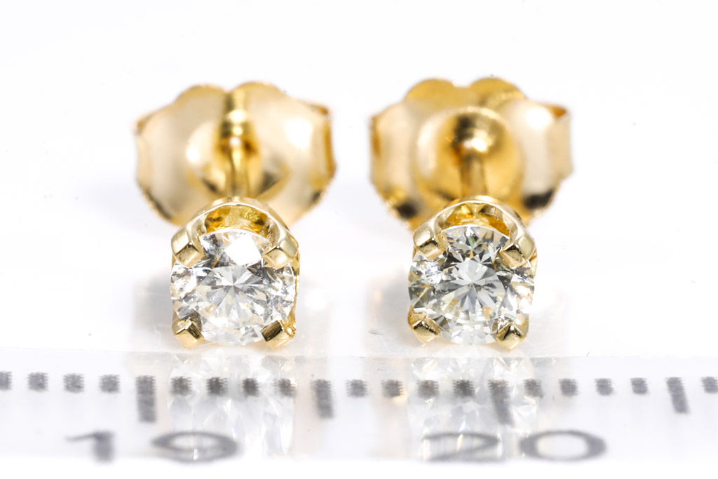Diamond stud earrings with 2 round Diamonds totalling 0.37cts (Estimated grading: J P1). 18ct yellow gold. Weight: 0.9g. (New)