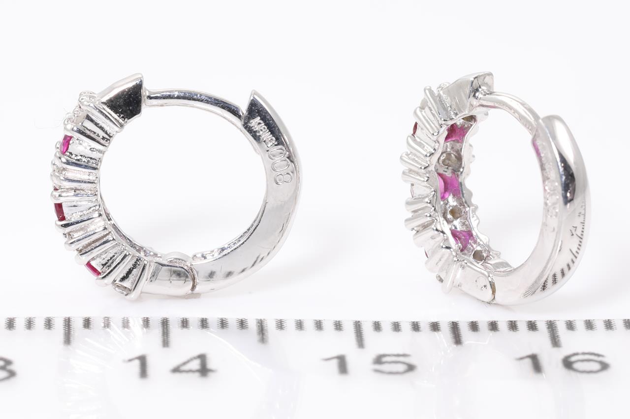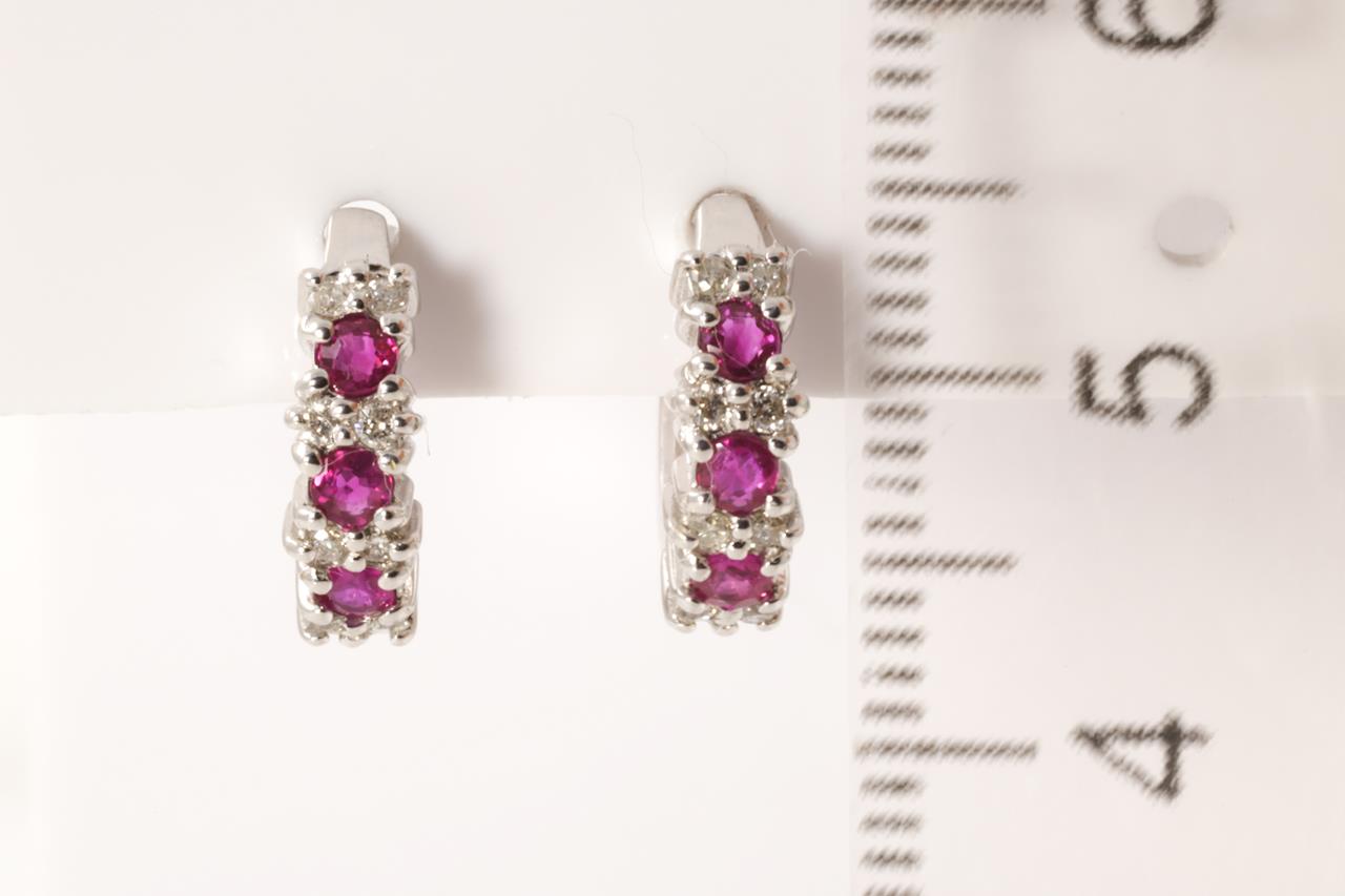 Ruby and Diamond huggie earrings with Rubies totalling 0.37cts and Diamonds totalling 0.16cts. 18ct white gold. Weight: 3.1g (Pre-owned)