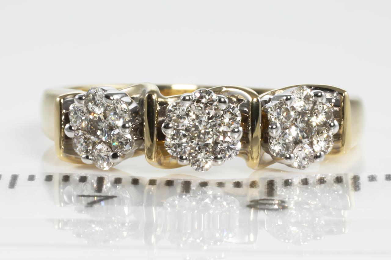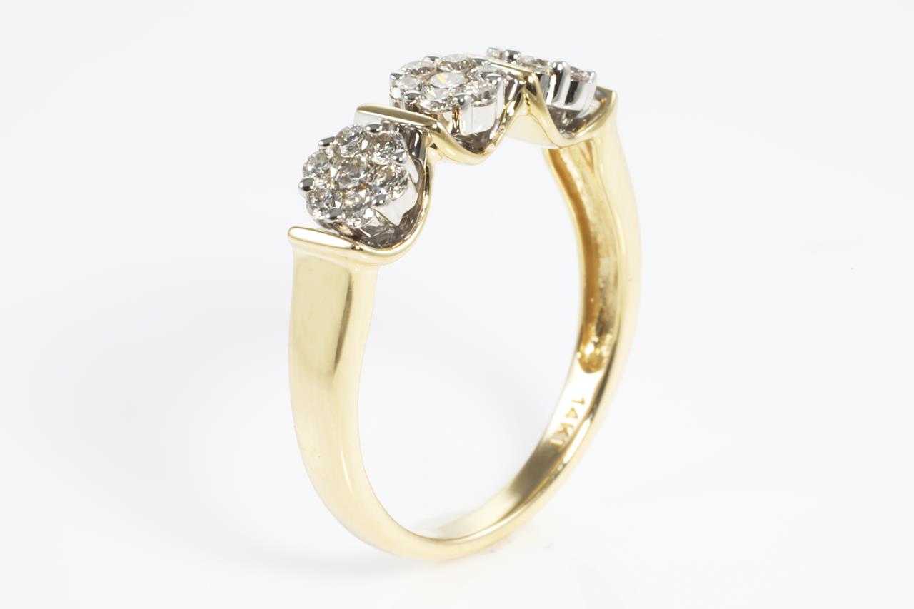 Diamond dress ring with round Diamonds totalling 0.40cts (Estimated grading: H SI). 14ct yellow gold. Ring size: M. Weight: 2.9g (New)