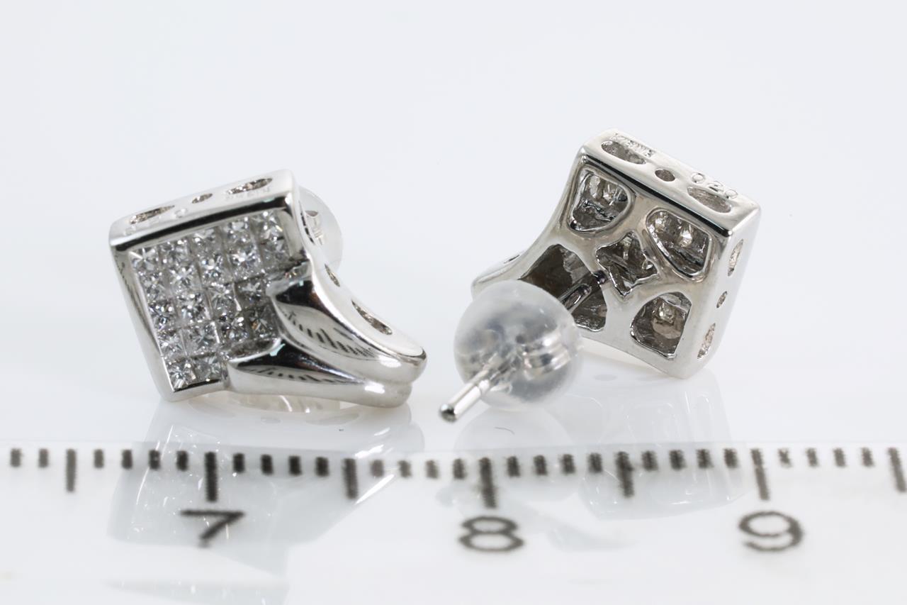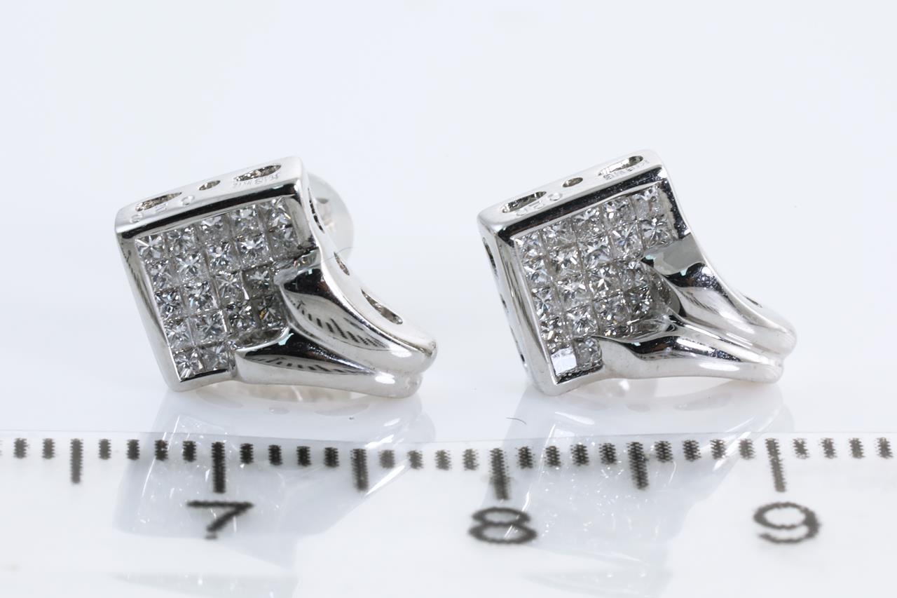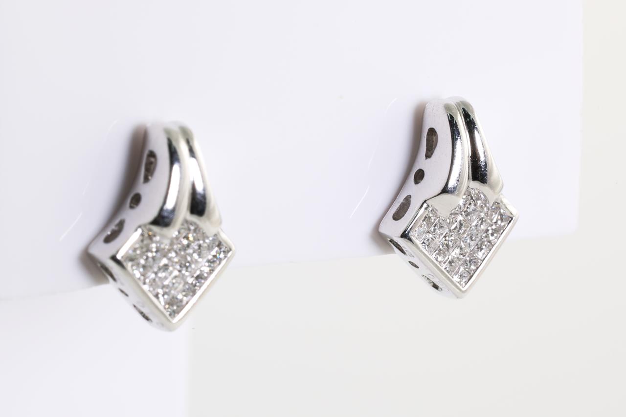 Diamond earrings with princess cut Diamonds totalling 0.40cts (Estimated grading: G SI). 18ct white gold. Weight: 3.2g. (Pre-owned)