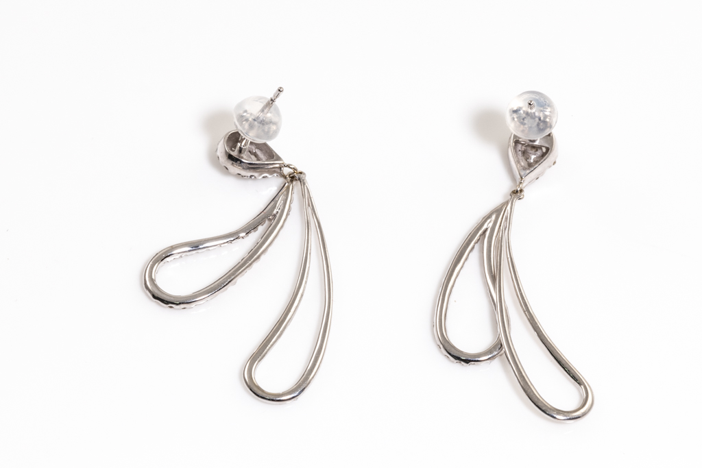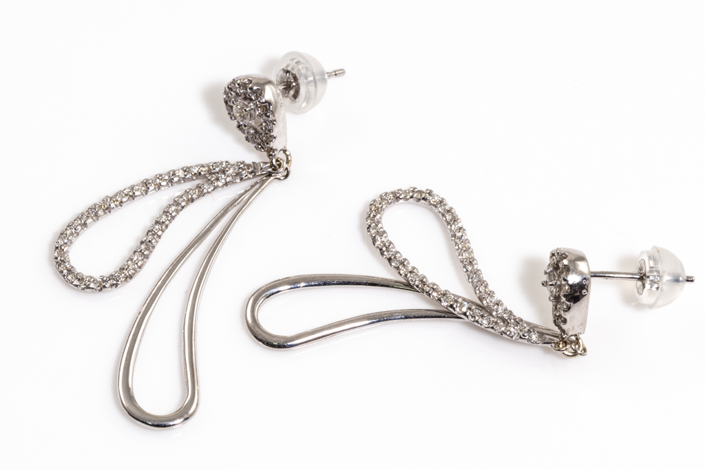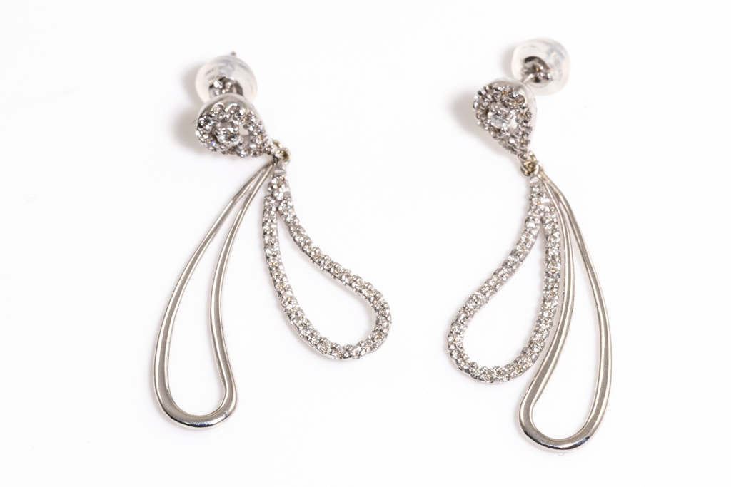 Diamond earrings with round Diamonds totalling 0.40cts (Estimated grading: H SI-P1). 18ct white gold with 18ct white gold and silicon back. Weight: 4.2g. (Pre-owned)