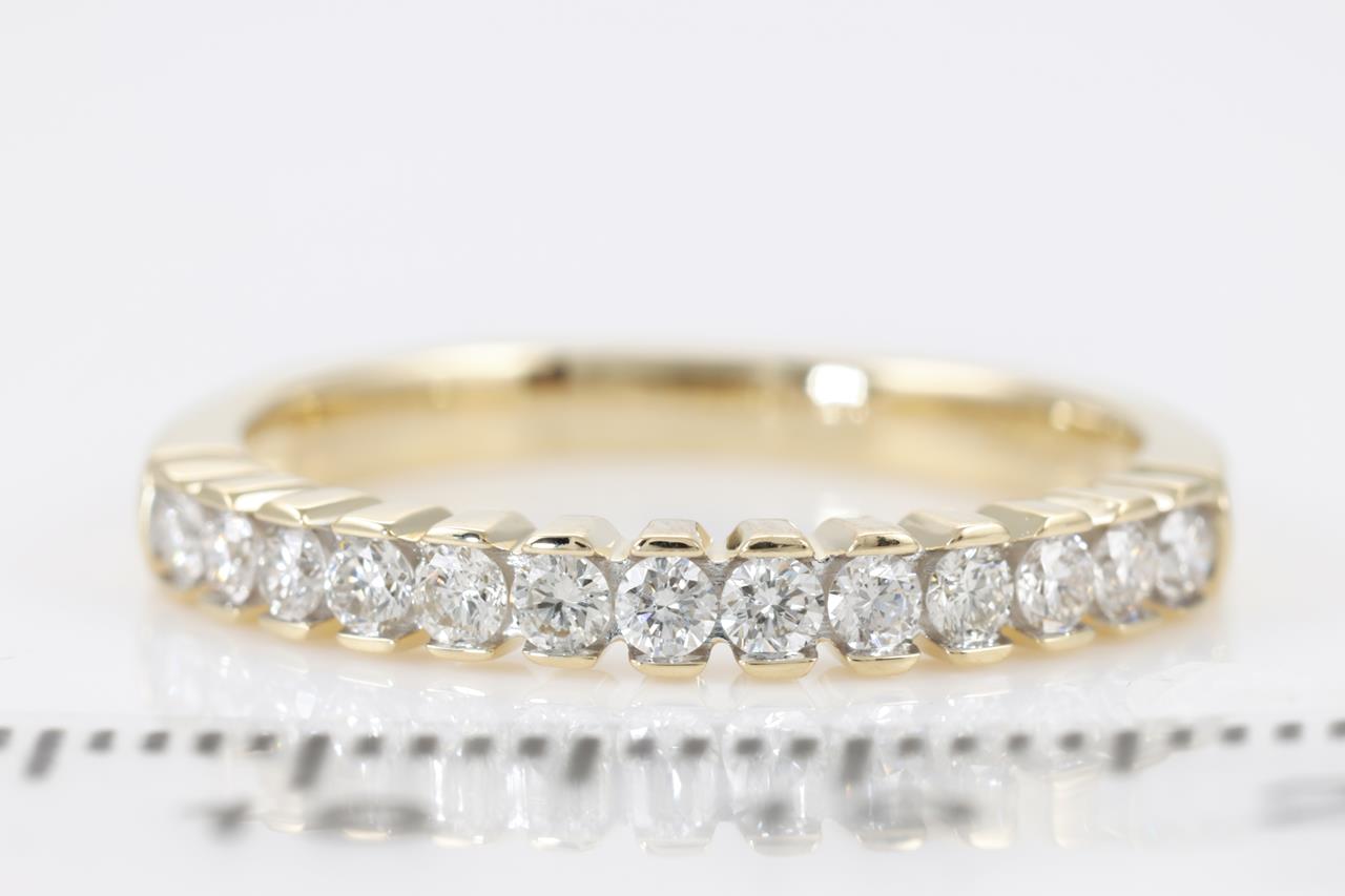 Diamond eternity ring with 13 round Diamonds totalling 0.40cts (Estimated grading: H SI). 14ct yellow gold. Size: N. Weight: 2.6g. (New)