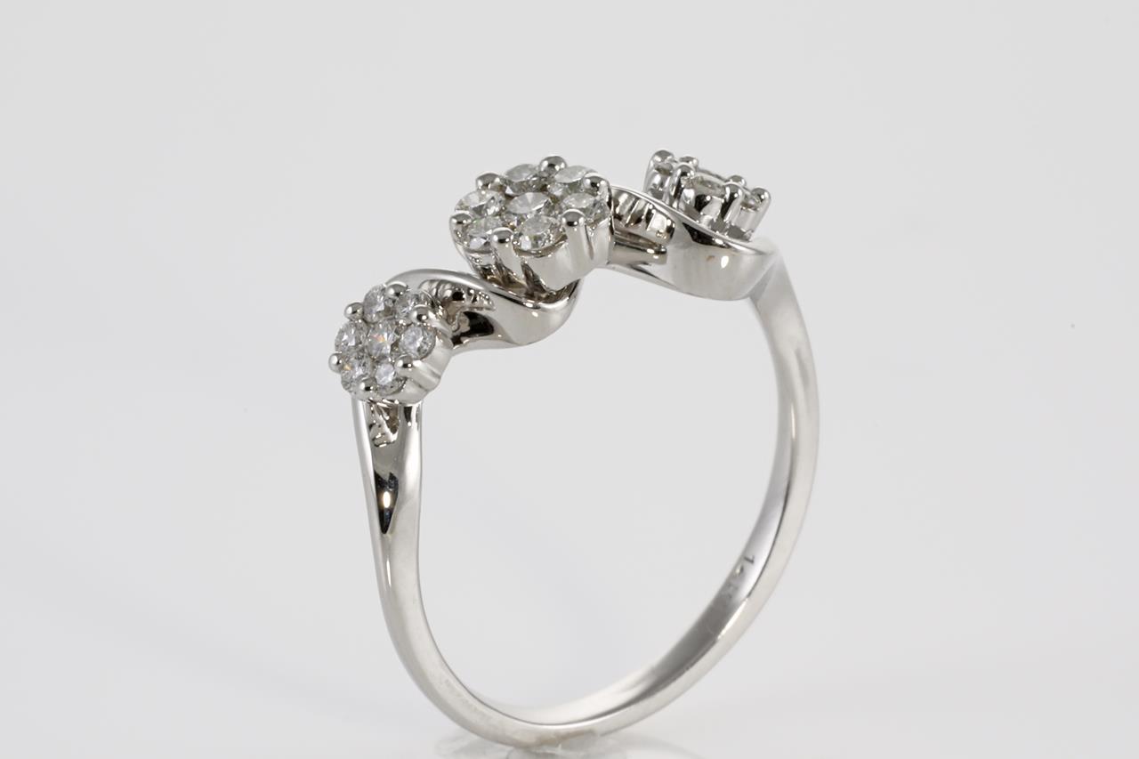 Diamond ring with round Diamonds totalling 0.40cts (Estimated grading: H SI). 14ct white gold. Ring size: M - Note: resizing this ring is not recommended. Weight: 2.9g (New)