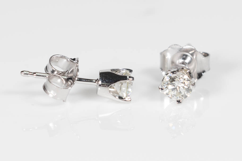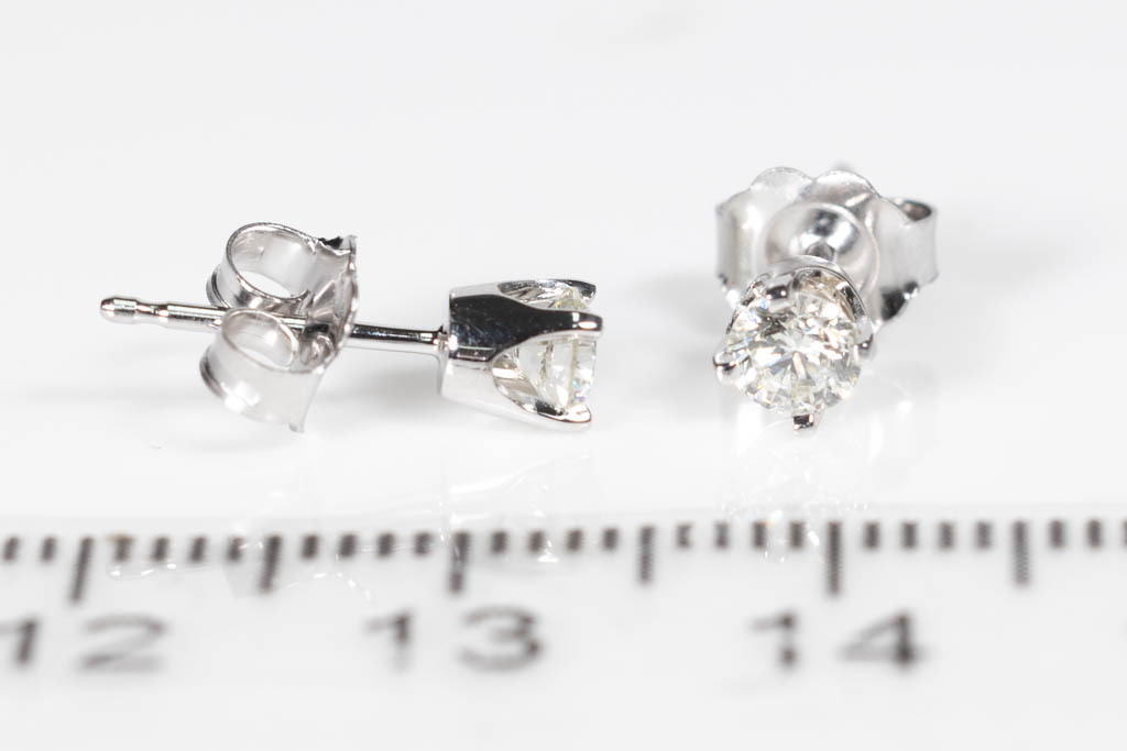 Diamond stud earrings with 2 round Diamonds totalling 0.40cts (Estimated grading: J SI). 18ct white gold. Weight: 0.9g. (New)