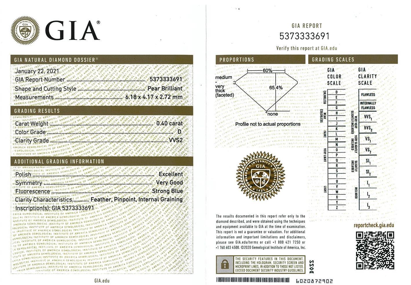 A loose pear shape Diamond of 0.40ct (with GIA report graded as D VVS2 #537333691) (New)