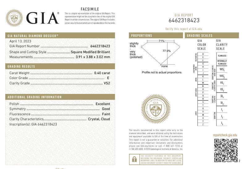 A loose princess cut Diamond of 0.40ct (with GIA summary report of E VS2# 6462318423