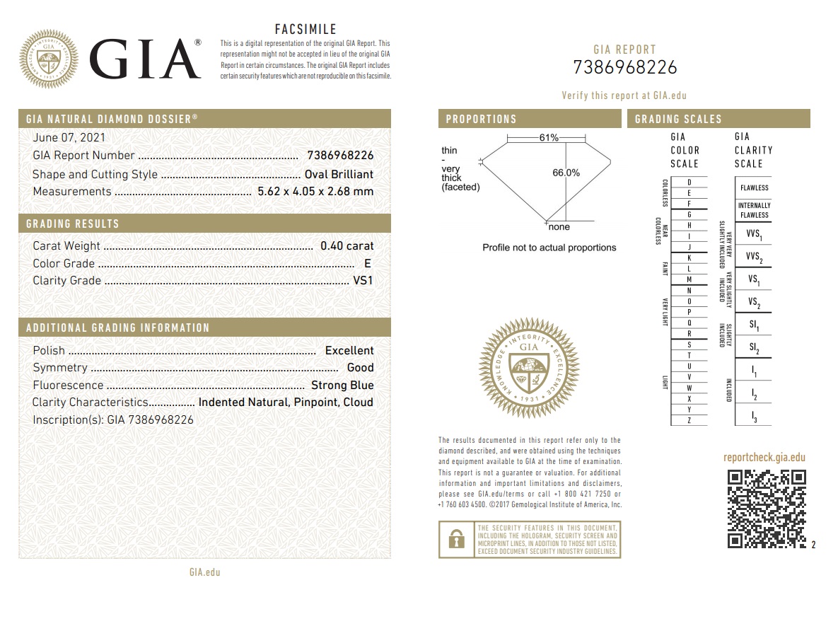0.40ct Loose Oval Diamond GIA E VS1