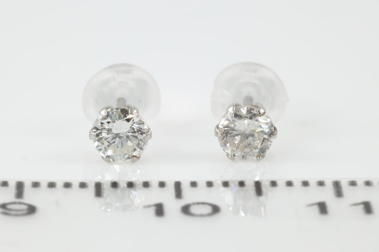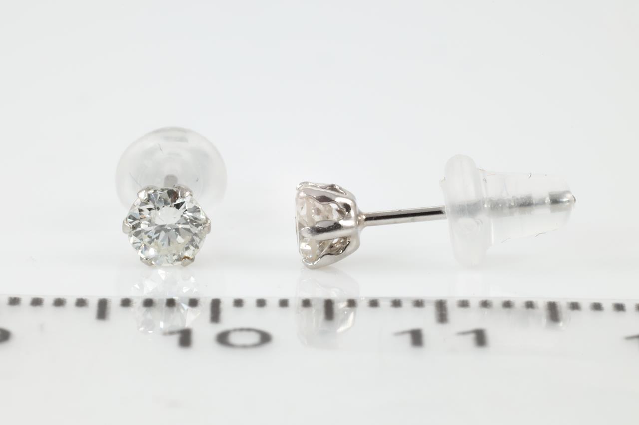 Diamond stud earrings with round Diamonds totalling 0.41cts (Estimated grading: J SI). Platinum with silicon backs. Weight: 0.4g (Pre-owned)