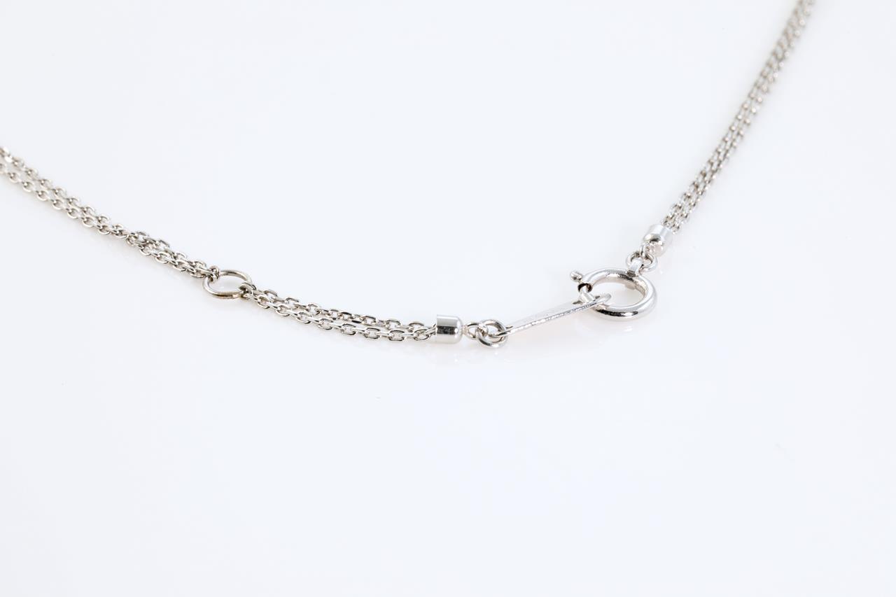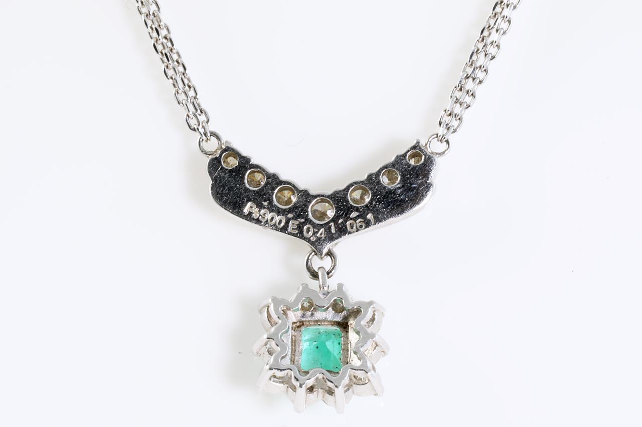 Emerald and Diamond Necklace with emerald cut Emerald of 0.41ct and Diamonds totalling 0.61cts (Estimated grading: I-J SI-P1). Platinum. Length 39cm. Weight: 7.50g (Pre-owned)