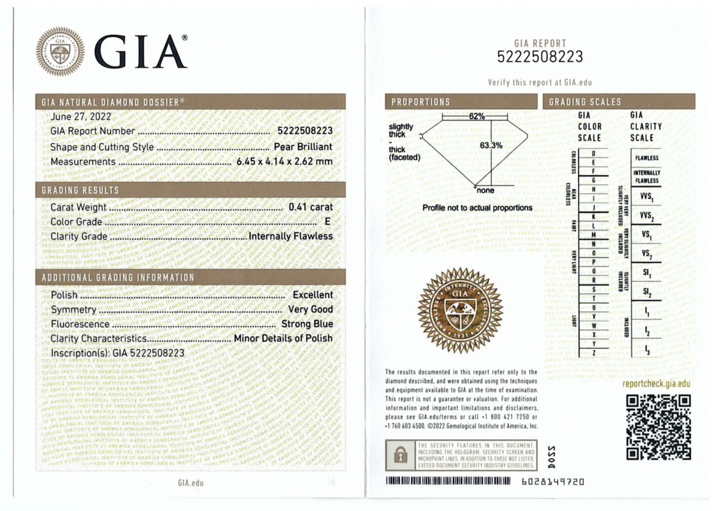 A loose pear shape Diamond of 0.41ct (with GIA summary report graded as E IF #5222508223). (New)