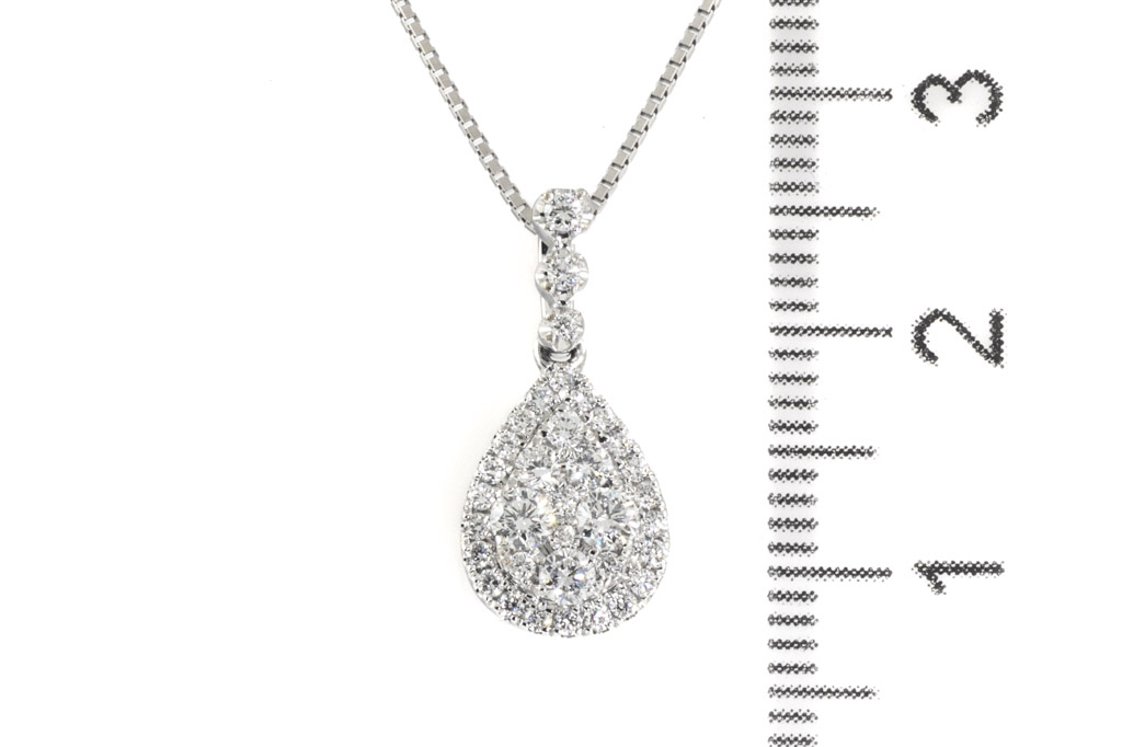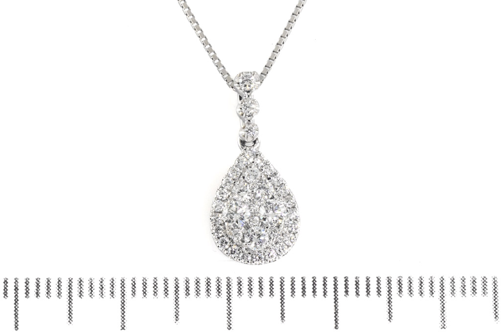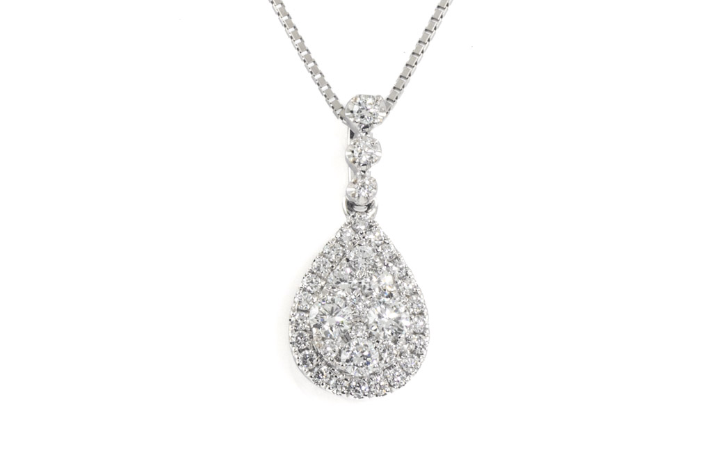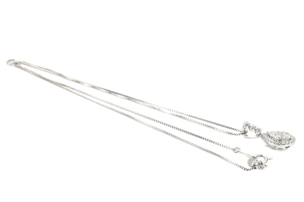 Diamond pendant with round Diamonds totalling 0.42cts (Estimated grading: G-H VS-SI). 18ct white gold with adjustable 18ct white gold 45cm chain. Weight: 3.4g. (Pre-owned)