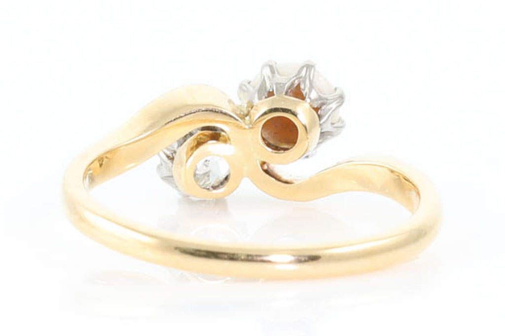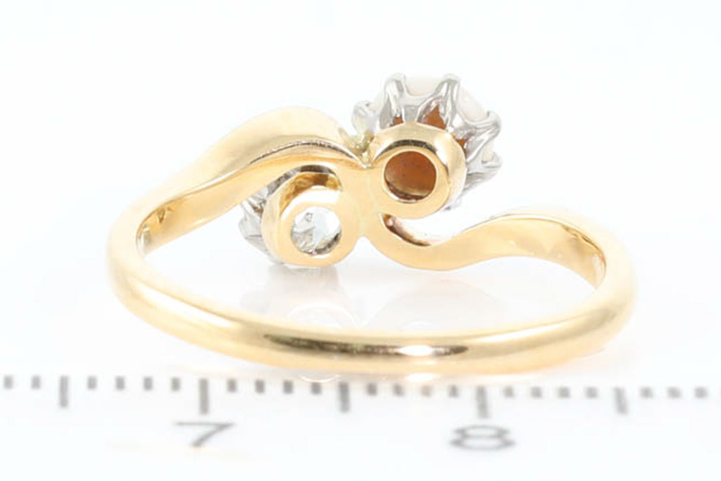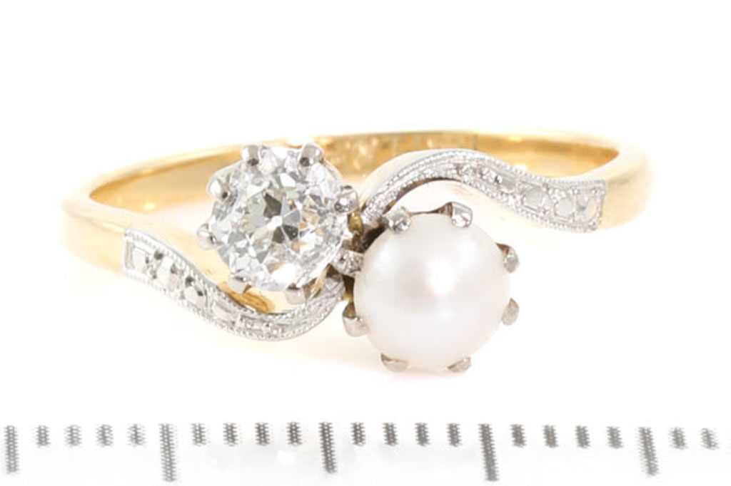 Diamond and Pearl dress ring with round Diamond of 0.43ct (Estimated grading: H SI2) and 5mm cultured pearl. 18ct yellow and white gold. Ring size N. Weight: 3.2g. With Valuation Certificate #055700024620.