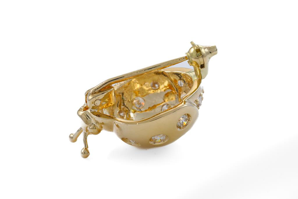 Diamond Ladybug design brooch with round Diamonds totalling 0.43cts (Estimated grading: I-J SI). 18ct yellow gold. Weight: 4.5g. (Pre-owned)