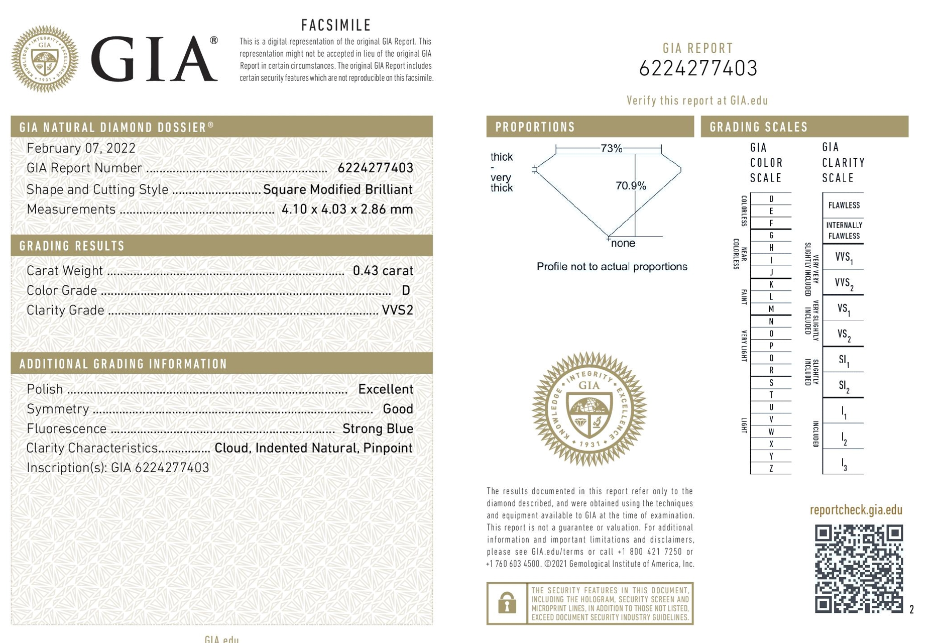 A loose princess cut diamond of 0.43ct (with GIA summary report graded as D VVS2#6224277403)