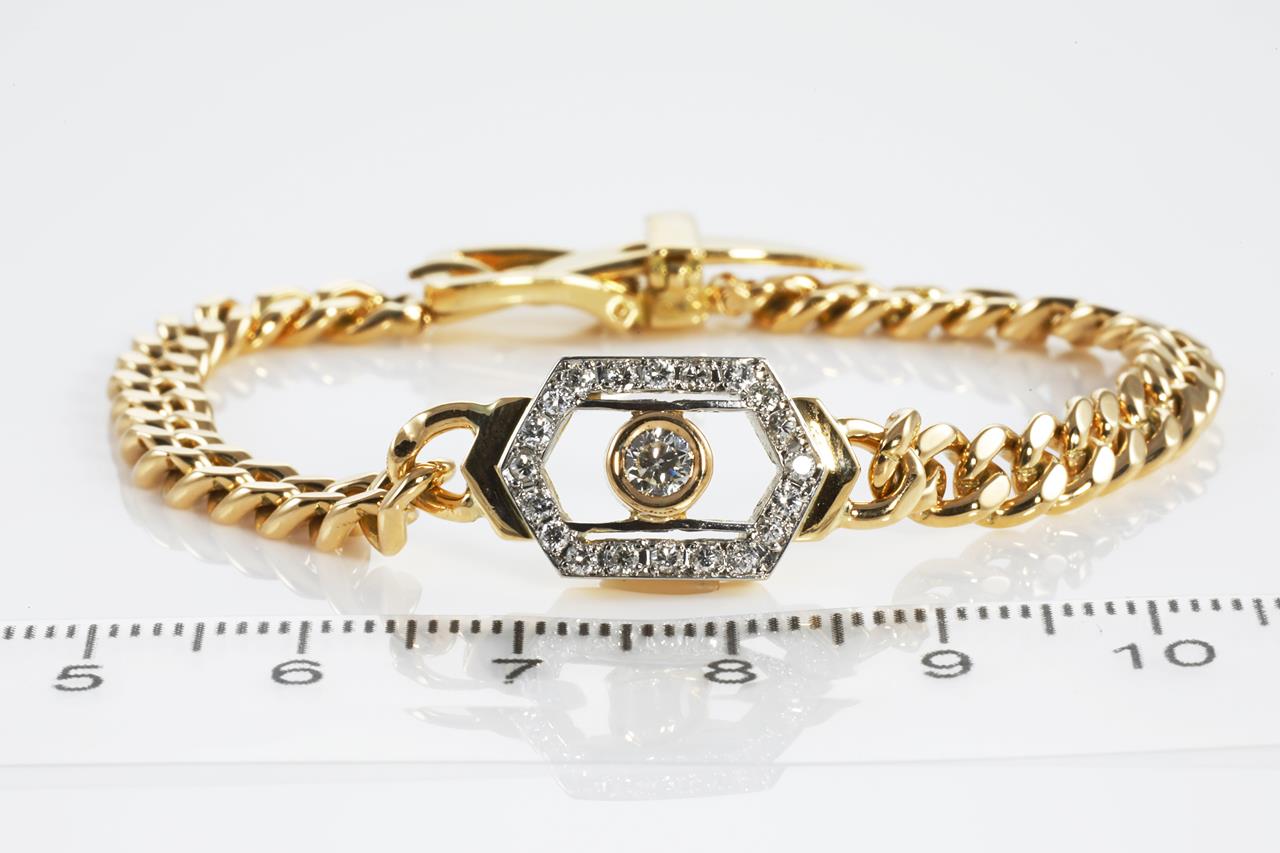 Diamond bracelet with round Diamonds totalling 0.45cts (Estimated Grading: G-I SI-P1). 18ct yellow gold. Length: 17cm. Weight: 20.0g (Pre-owned)