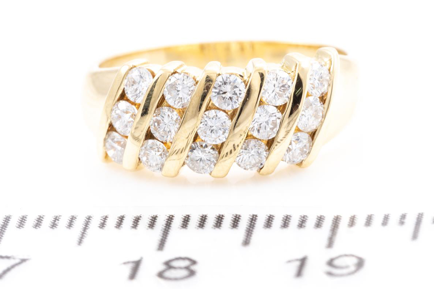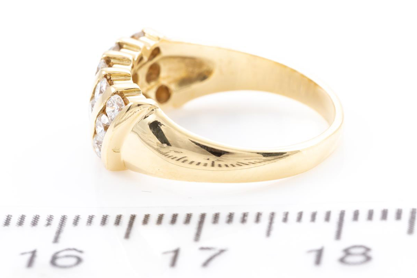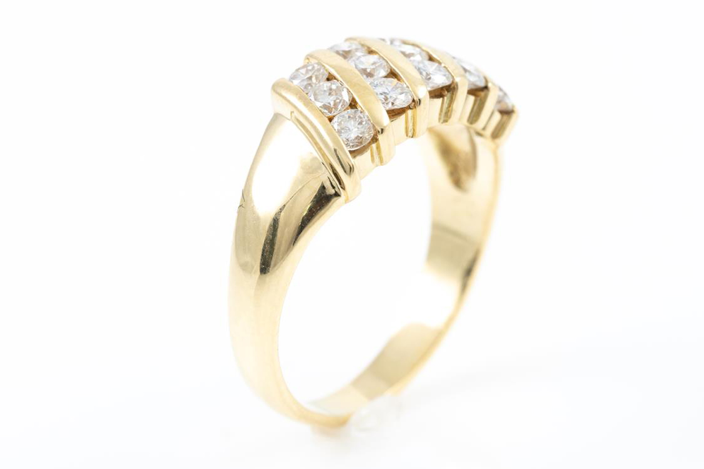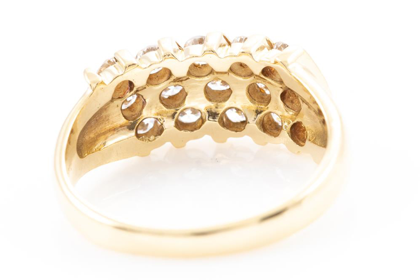 Diamond dress ring with round Diamonds totalling approximately 0.45cts (Estimated grading: G SI-P1). 14ct yellow gold. Ring size H. Weight: 3.9g. (Pre-owned)