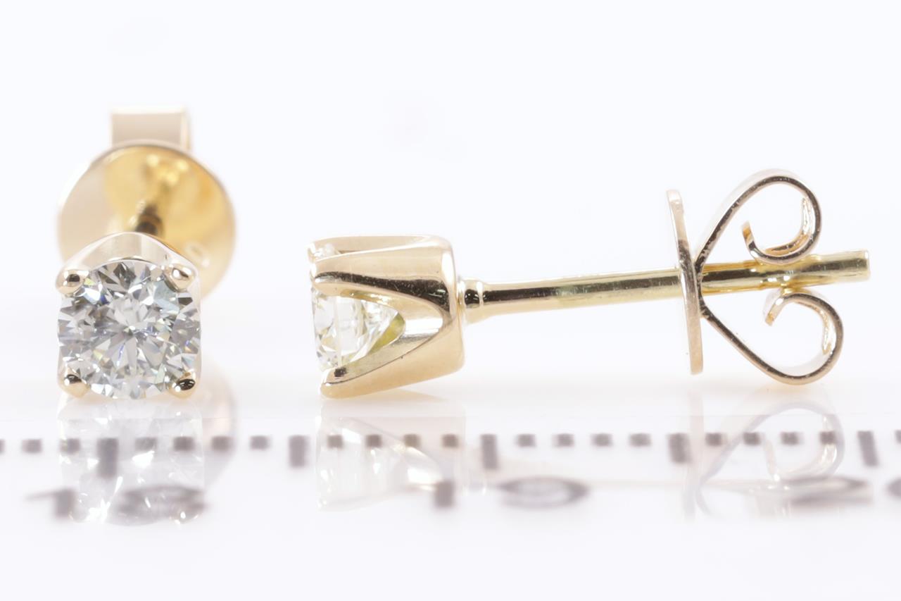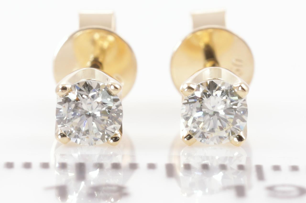 Diamond stud earrings with 2 round Diamonds totalling 0.45cts (Estimated grading: I-J SI). 18ct yellow gold. Weight: 1.4g. (New)