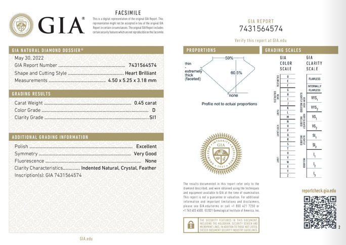 A loose heart shape Diamond of 0.45ct (with GIA summary report of D SI1 #7431564574). (New)