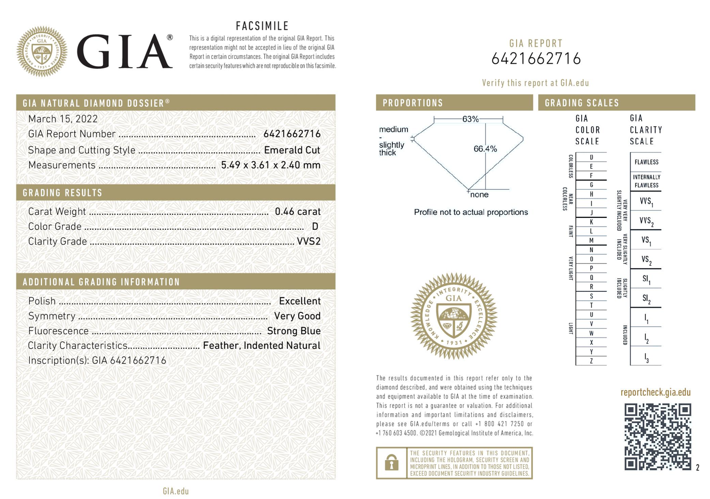 A loose emerald cut Diamond of 0.46ct (With GIA summary report graded as D VVS2 #6421662716