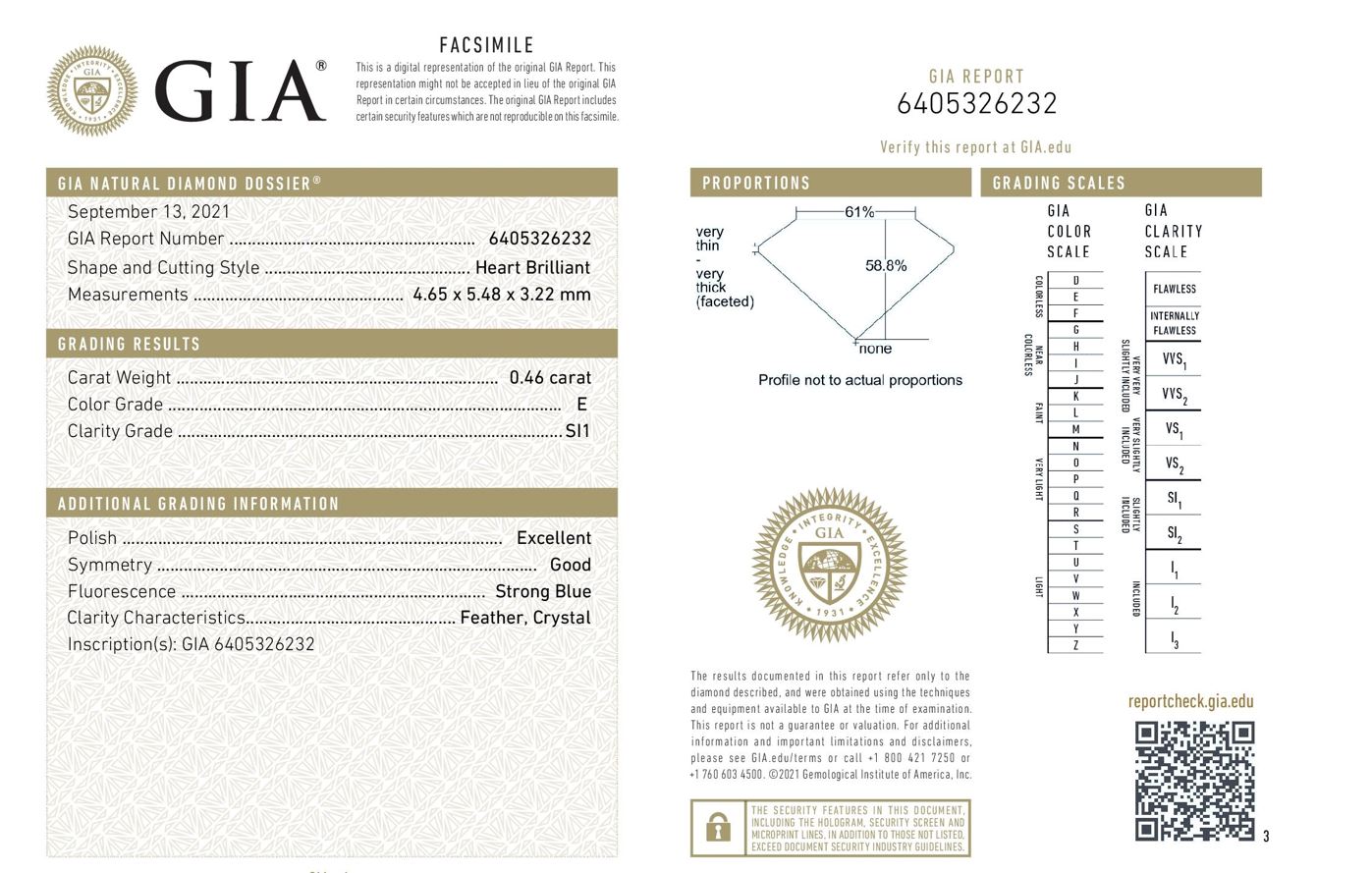 A loose heart shape Diamond of 0.46ct (with GIA summary report as E SI1 #6405326232). (New)