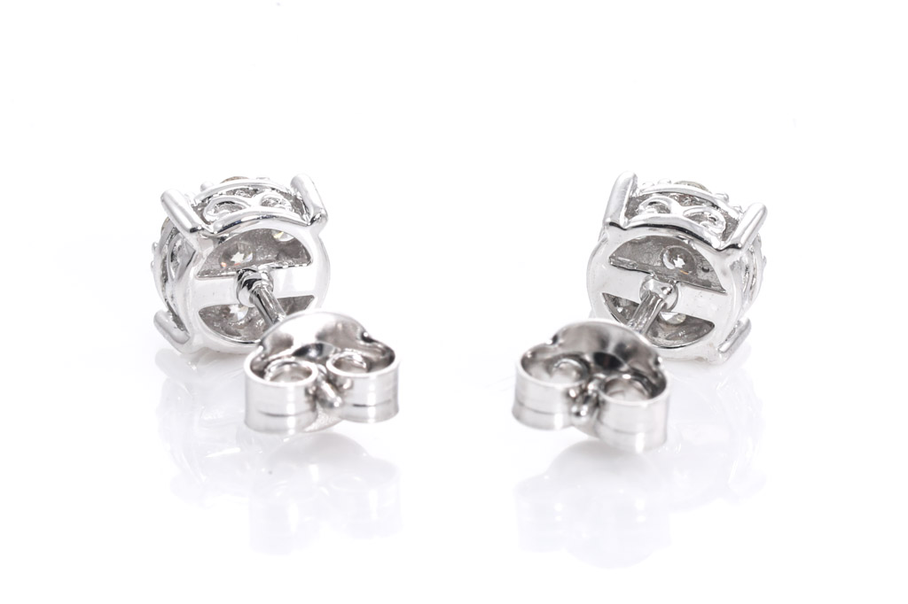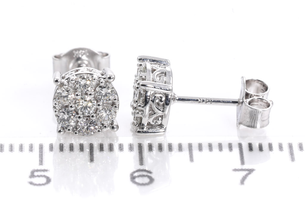 Diamond earrings with 14 round diamonds totalling 0.47cts. (Estimated grading: H SI). 14ct white gold. Weight: 1.8g. (New)