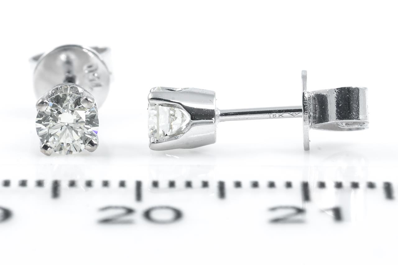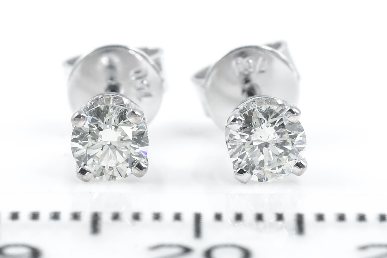 Diamond stud earrings with 2 round Diamonds totalling 0.47cts (Estimated grading: J-K VS). 18ct white gold. Weight:1.3g. (New)