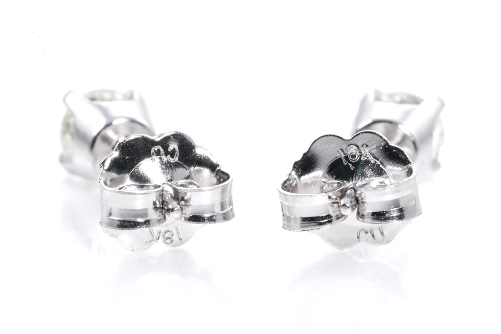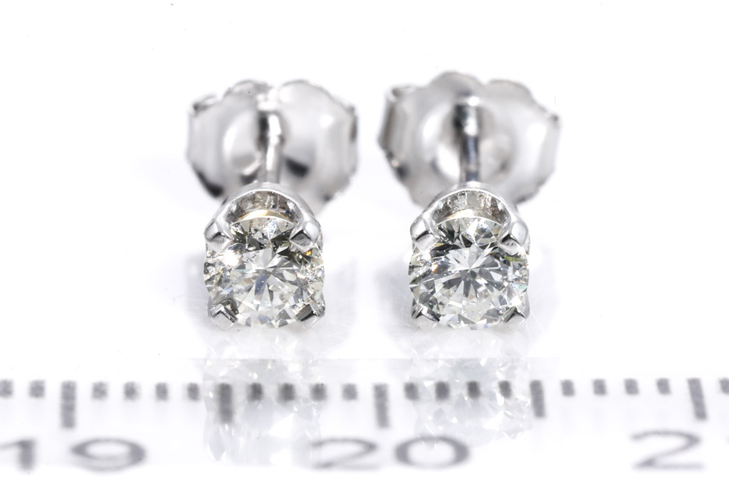 Diamond stud earrings with 2 round Diamonds totalling 0.47cts (Estimated grading: J P1). 18ct white gold. Weight: 1.1g. (New)