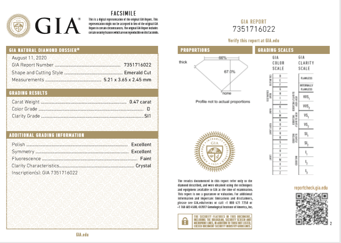 A loose emerald cut Diamond of 0.47ct (with GIA report graded as D SI1 #7351716022). (New)