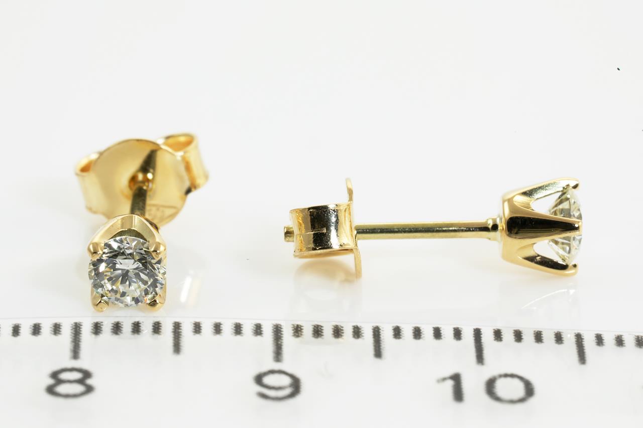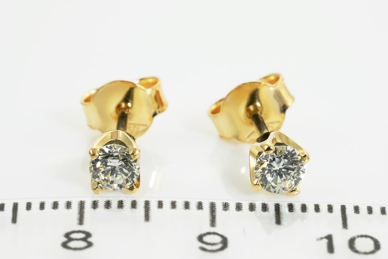 Diamond stud earrings with 2 round Diamonds totalling 0.47cts (Estimated grading: K VS). 18ct yellow gold. Weight: 1.4g. (New)