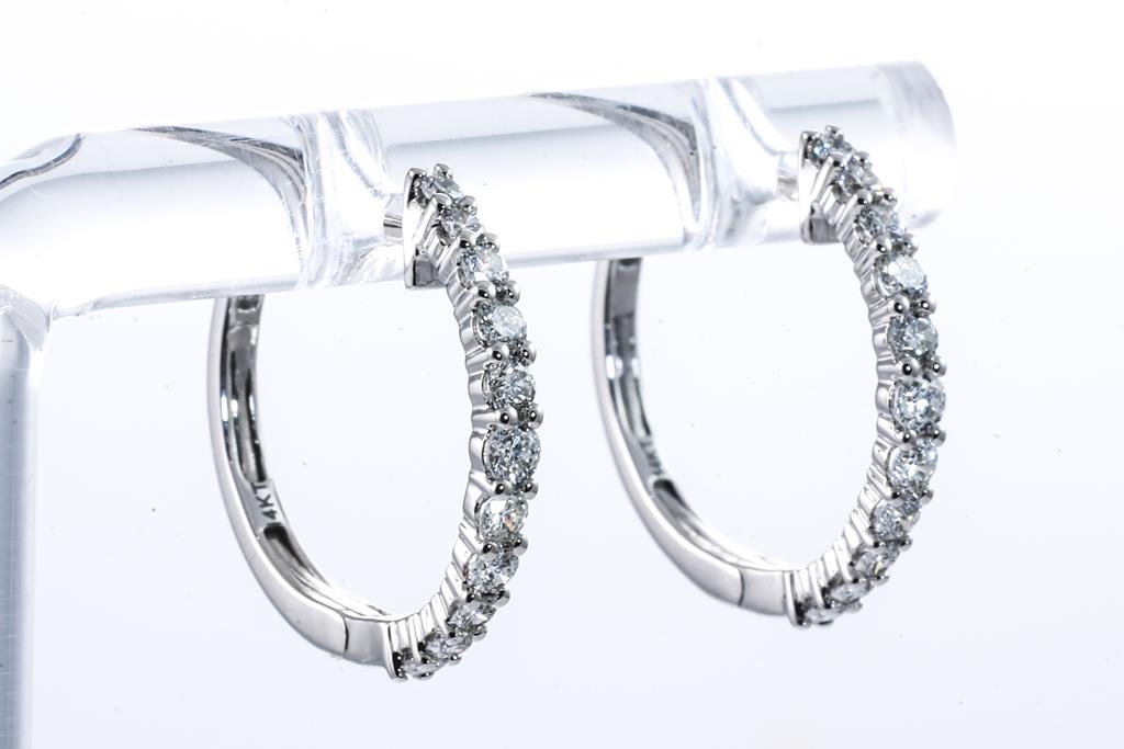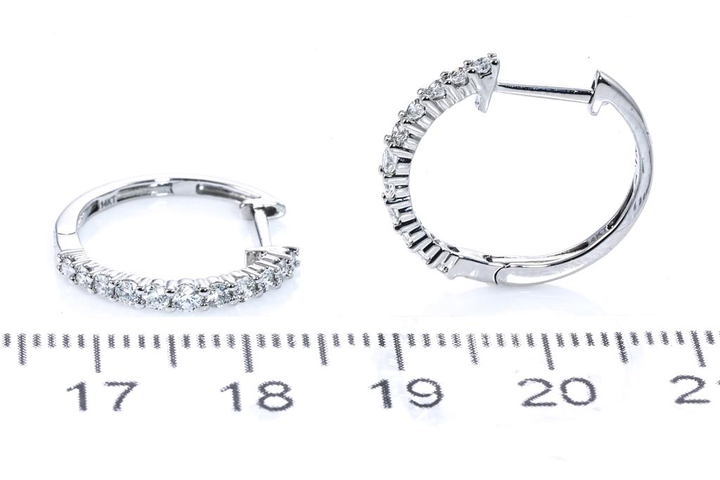 Diamond hoop earrings with round Diamonds totalling 0.48cts (Estimated grading: H SI). 14ct white gold. Weight: 2g (New)