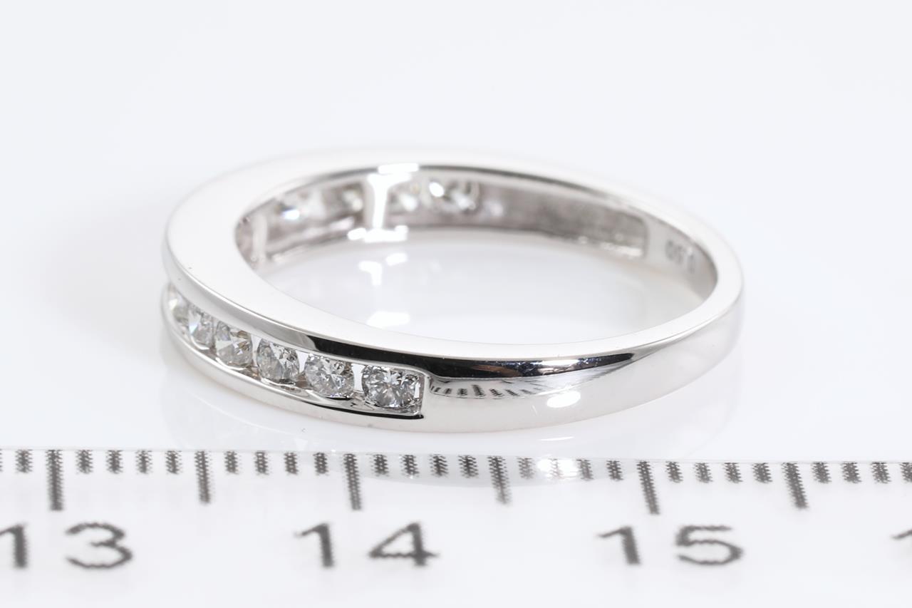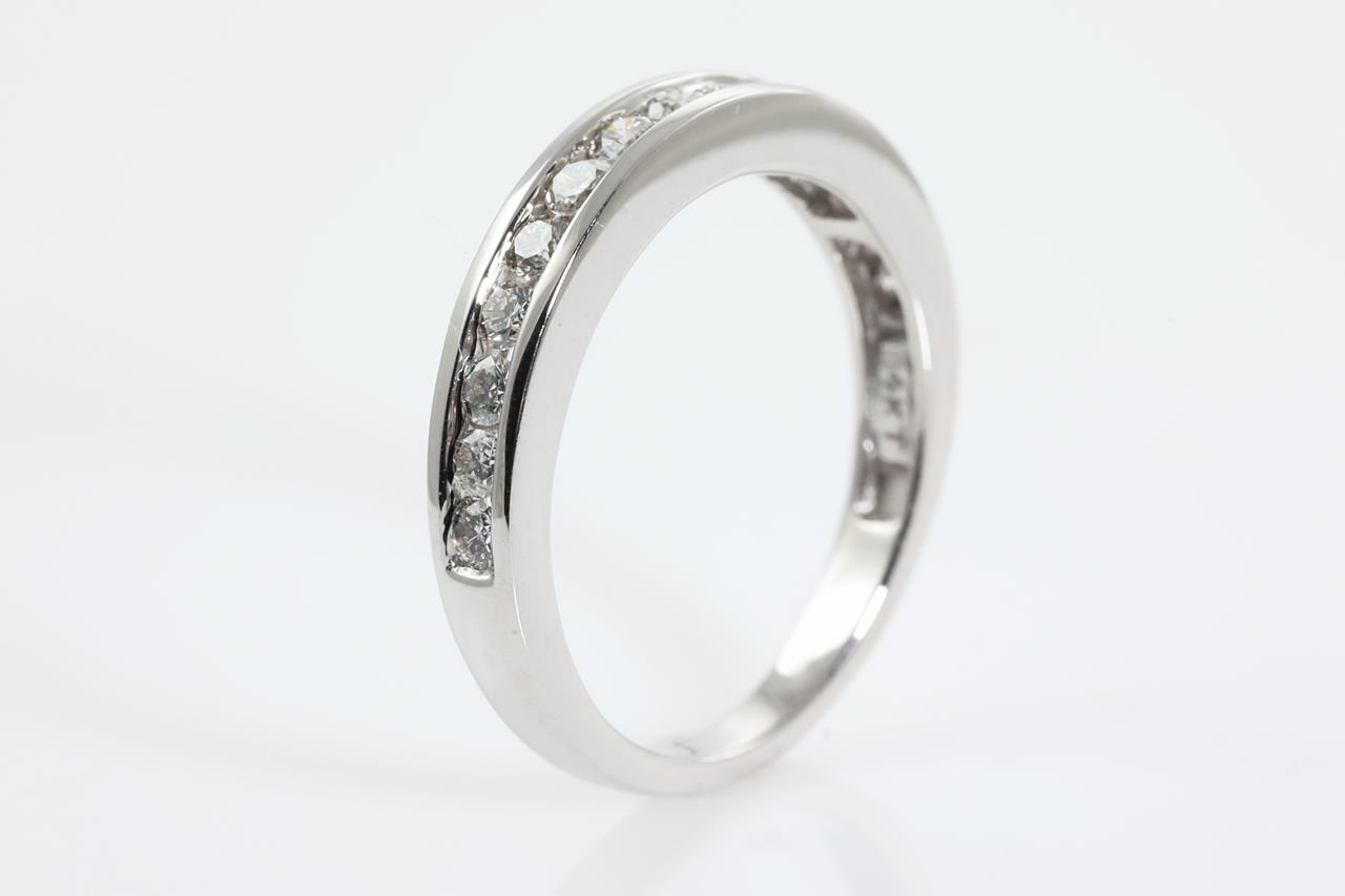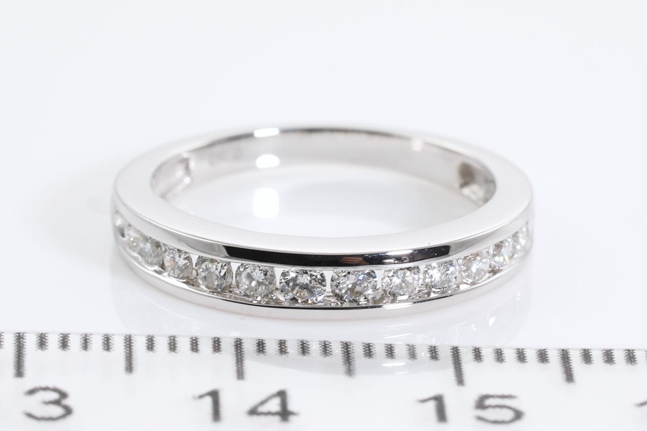 Diamond eternity ring with 14 round Diamonds totalling 0.48cts (Estimated Grading: H SI). 14ct white gold. Ring size L - cannot be resized up, down with ring clip. Weight: 2.7g (New).