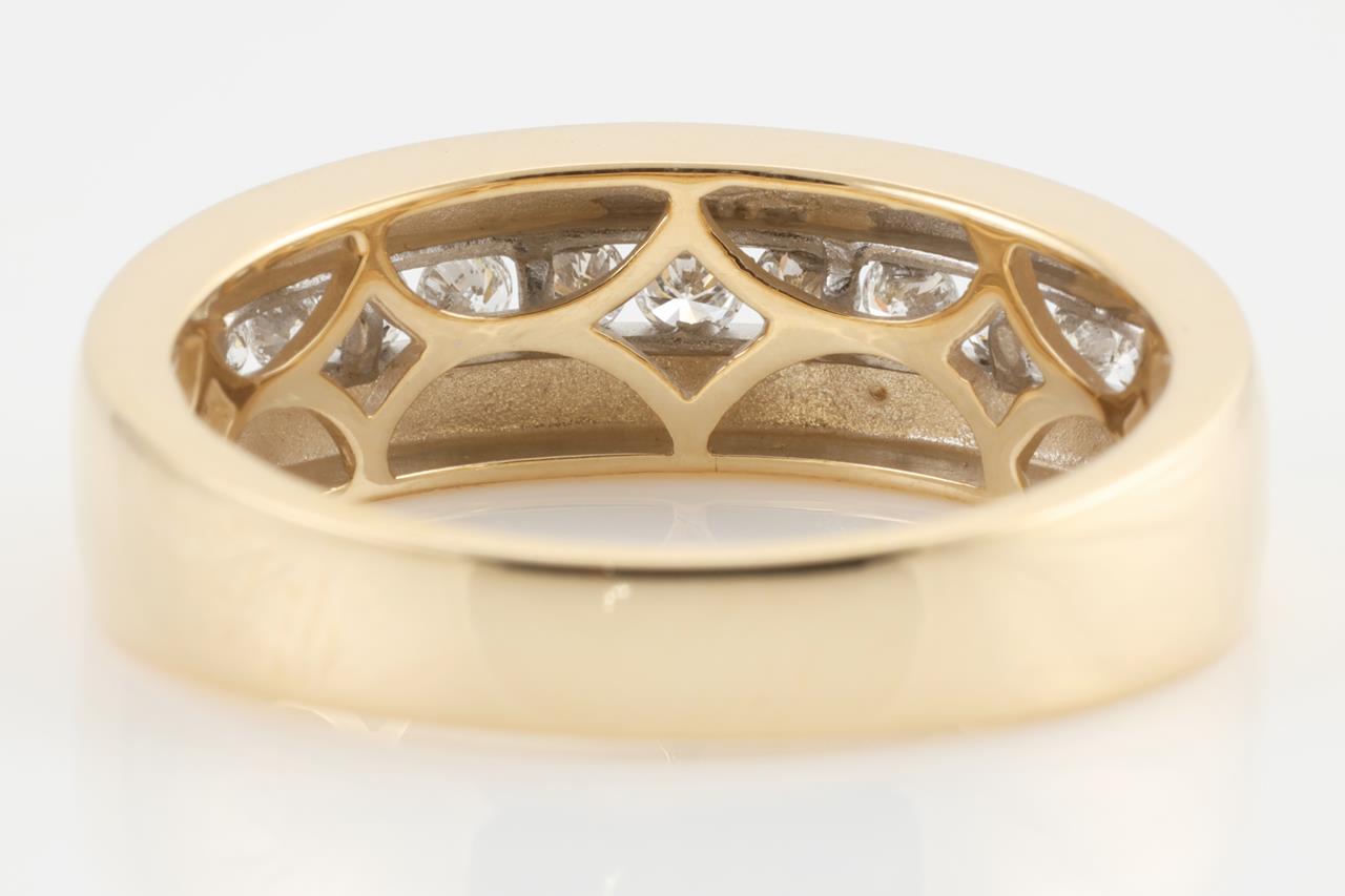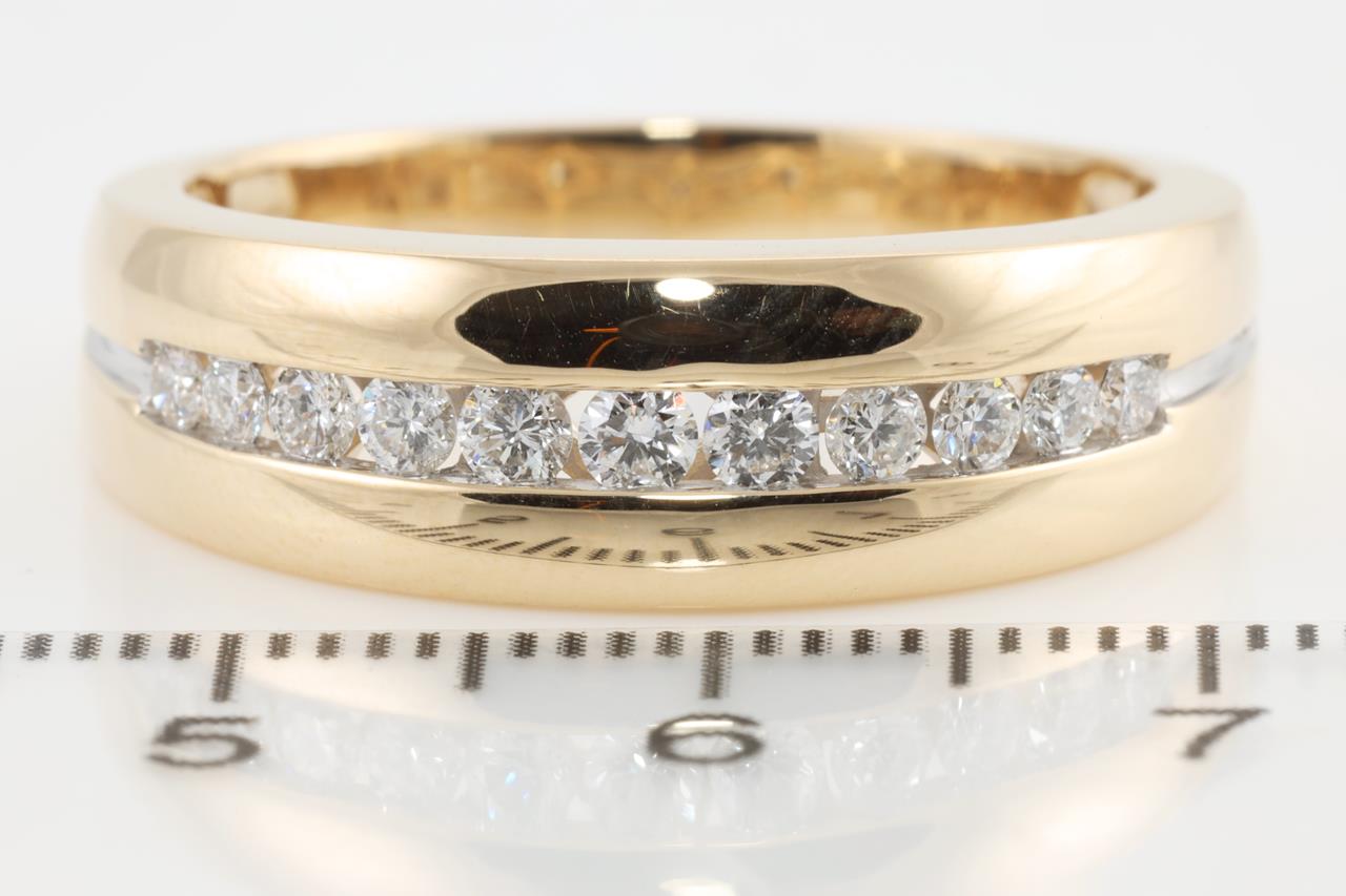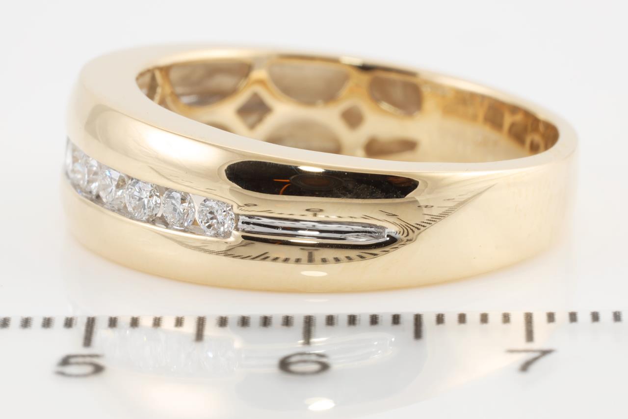 Diamond Mens ring with round Diamonds totalling 0.49cts (Estimated grading: H SI). 9ct Yellow gold. Ring size V. Weight: 5.4g (New)