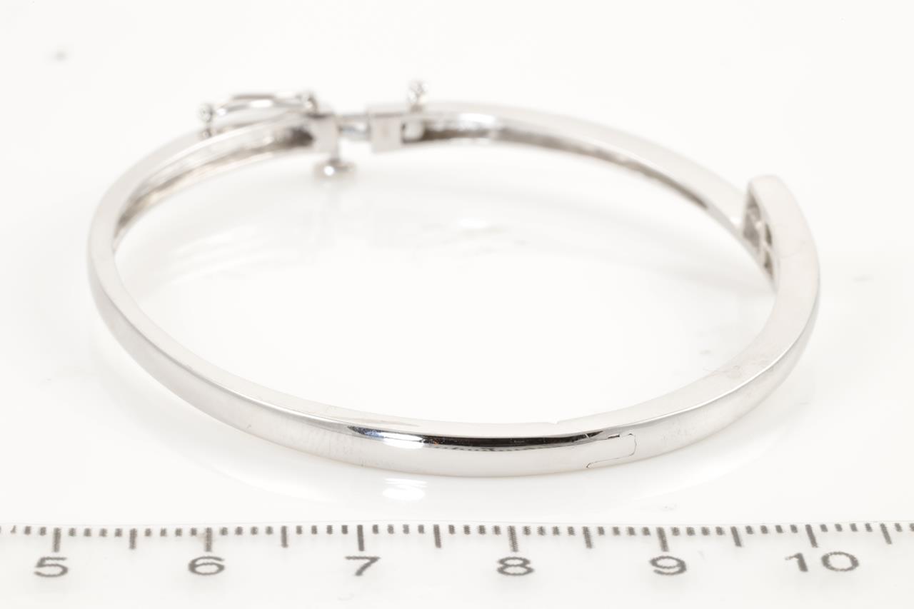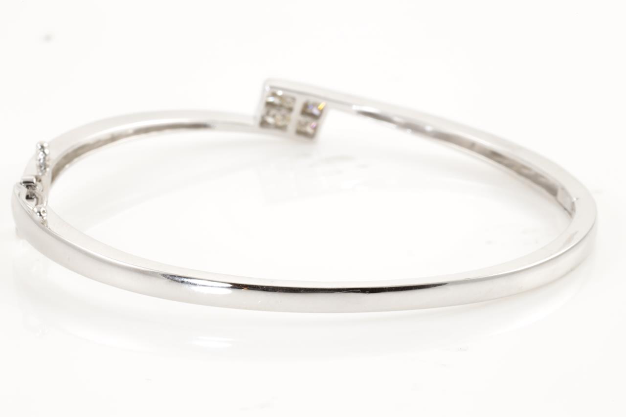 Diamond Bangle with six princess cut Diamonds totalling approximately 0.50cts (Estimated grading: L-M SI-P1 - mixed tinge). 14ct white gold. Weight 12.4g. Circumfererence: 15cm. (Pre-owned)