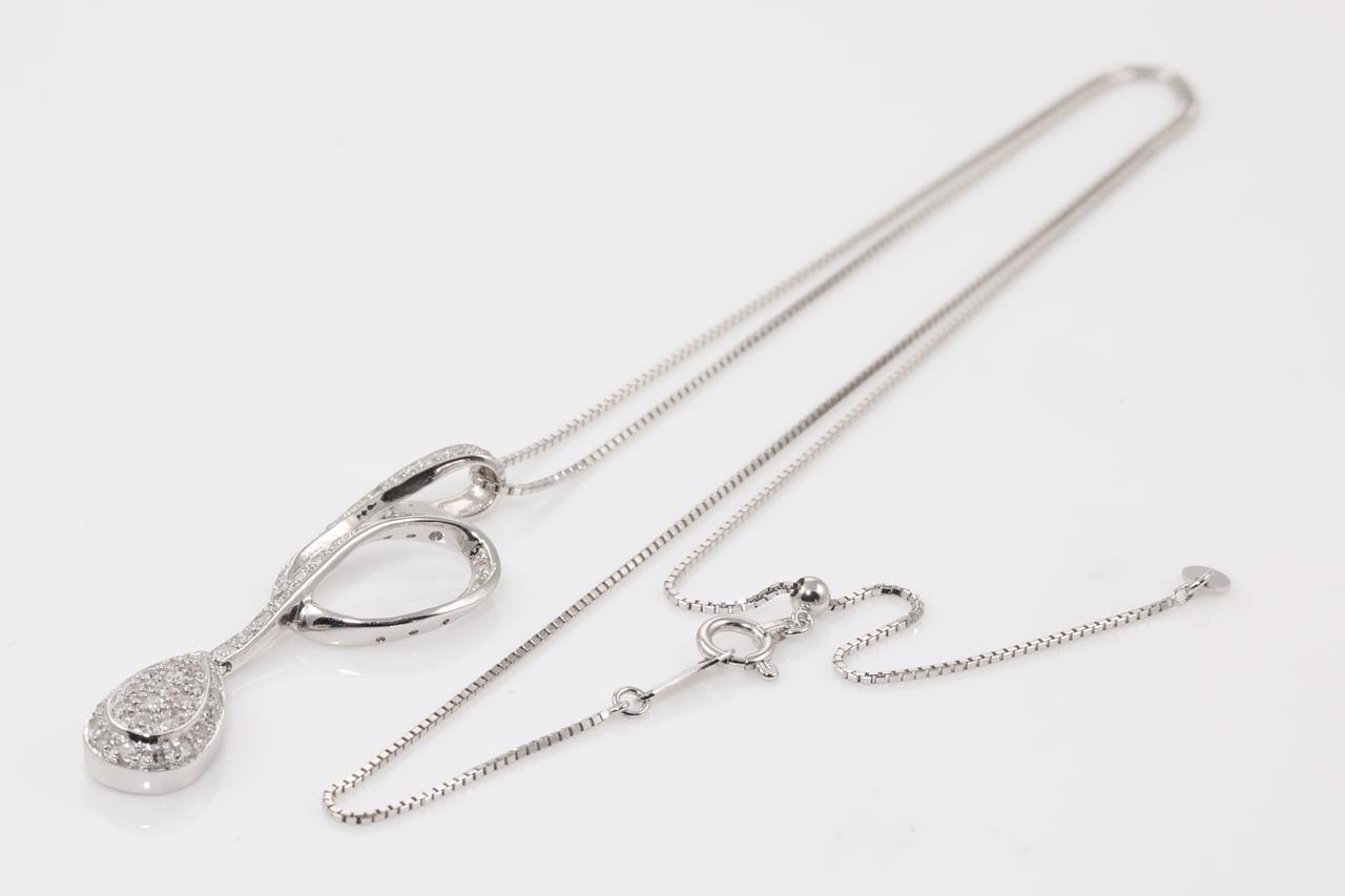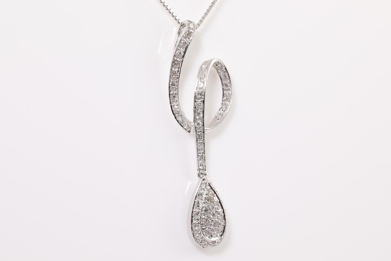 Diamond dress pendant with Diamonds totalling approximately 0.50cts (Estimated grading: H SI-P1). 18ct white gold with 44cm adjustable chain. Weight 5.0g. (Pre-owned)