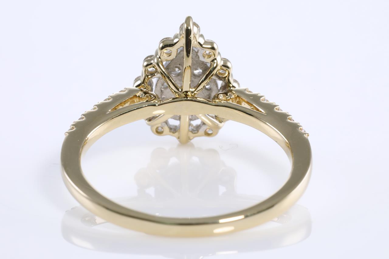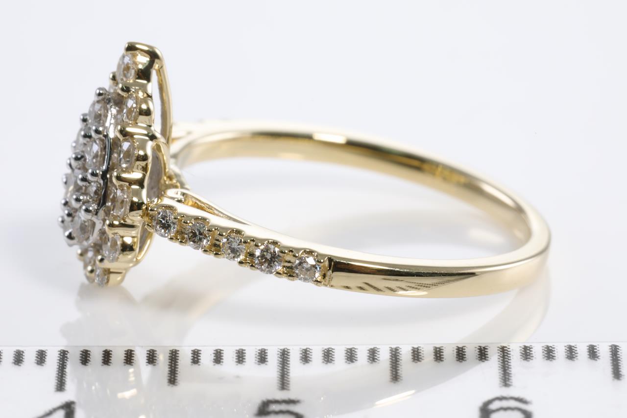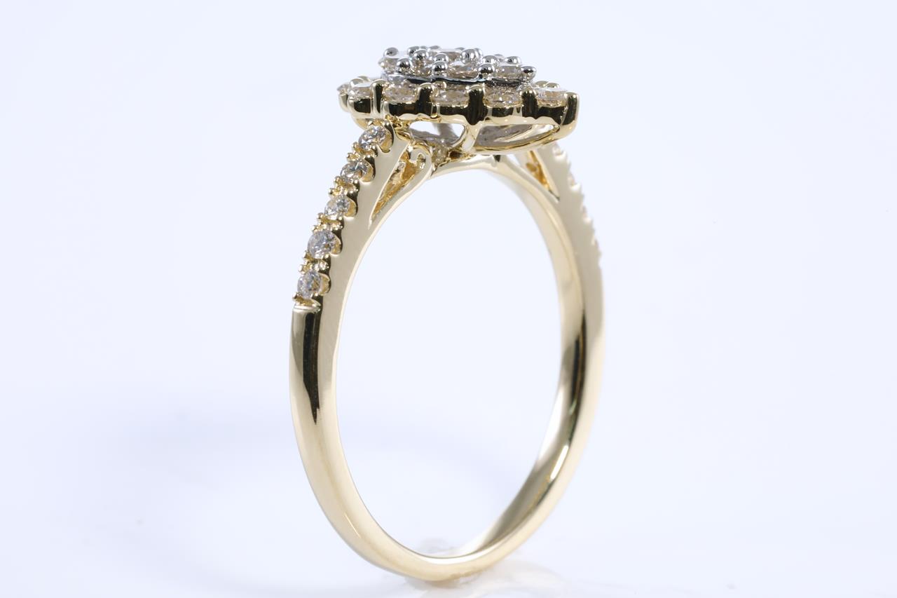 Diamond dress ring with round Diamonds totalling 0.50cts (Estimated grading: H SI). 14ct yellow gold. Ring size: M. Weight: 2.6g (New)