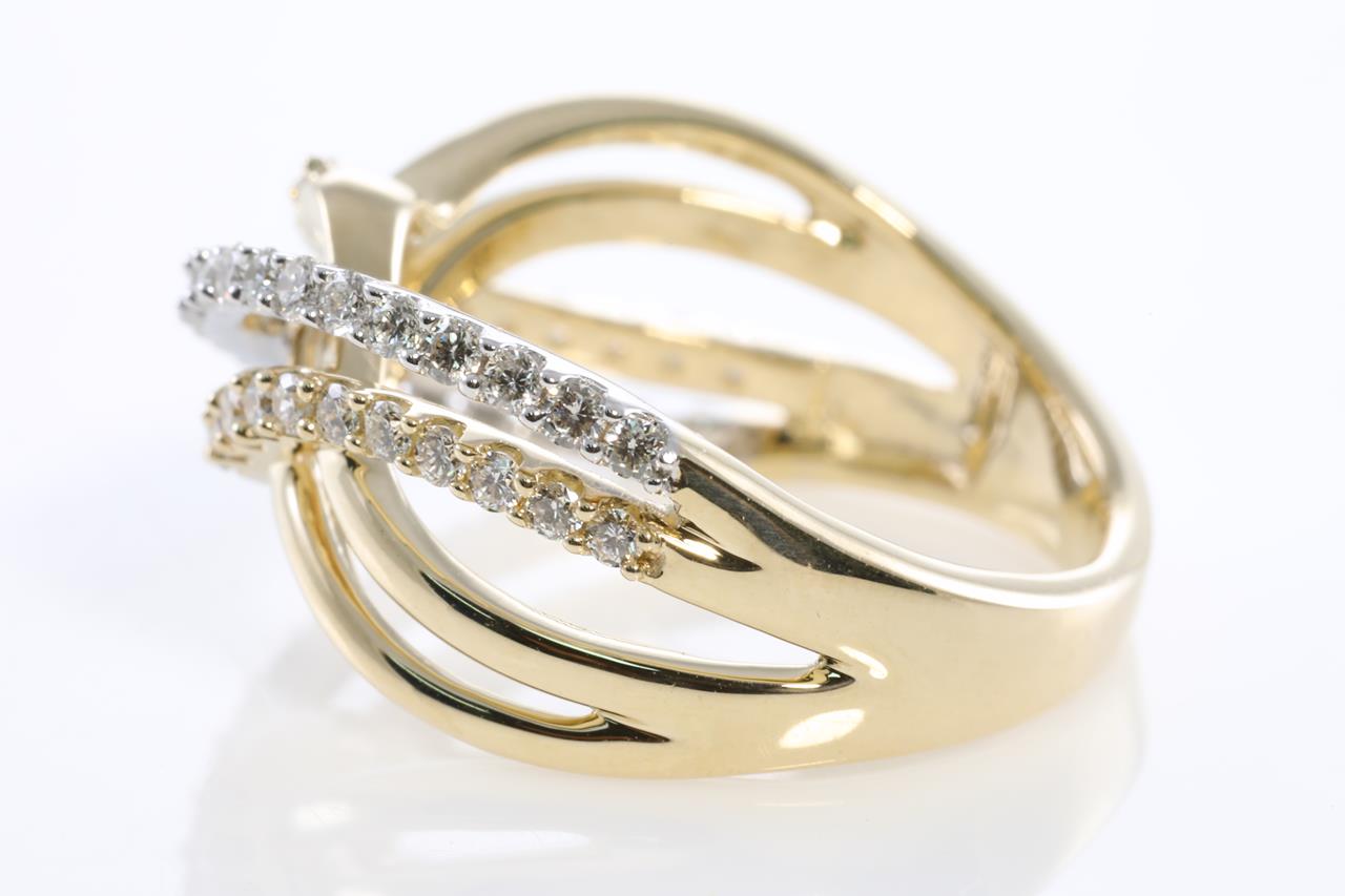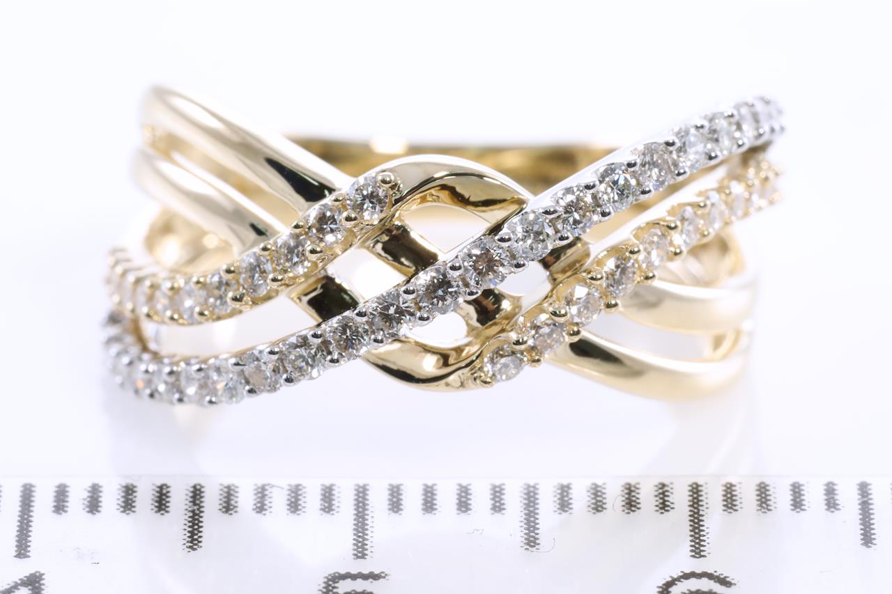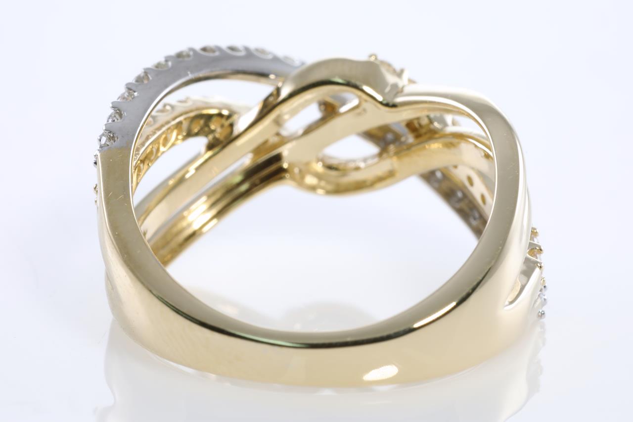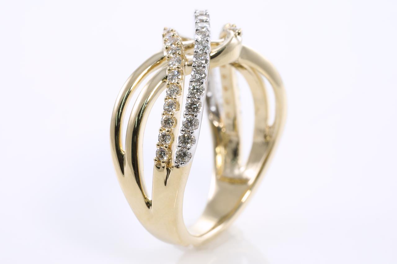 Diamond dress ring with round Diamonds totalling 0.50cts (Estimated grading: H SI) 14ct yellow gold. Ring size: L - Ring resizing is not recommended. Weight: 4.7g (New)