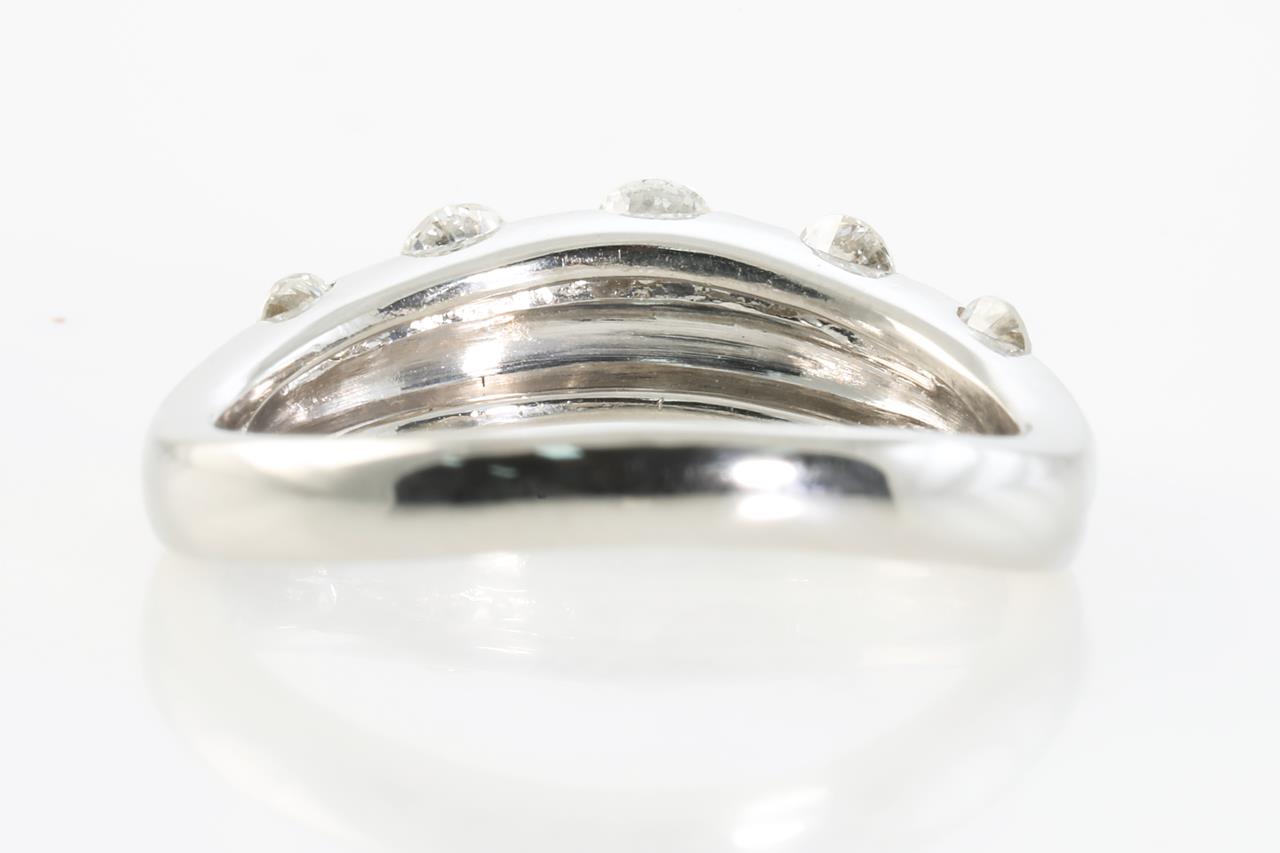 Diamond dress ring with round Diamonds totalling 0.50cts (Estimated grading: H SI). Platinum. Ring size: O - Ring resizing is not recommended. Weight: 6.5g (Pre-owned)